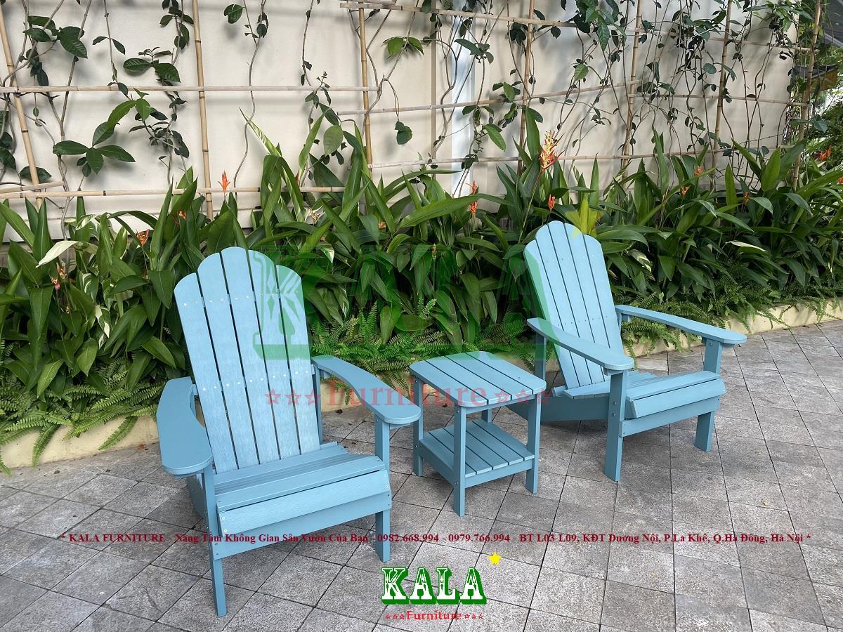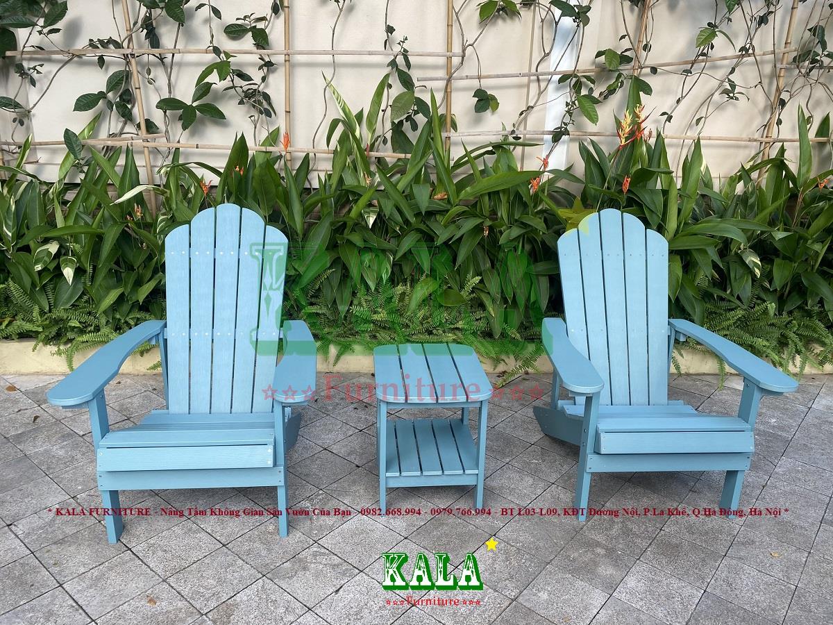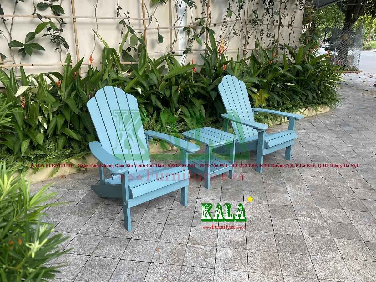 Bàn ghế Adriodack là dòng bàn ghế cafe, bàn ghế thư giãn, đọc sách cho gia đình, khu nghỉ dưỡng, resort,... Có thiết kế lưng ngả và có phần kê tay rộng, tạo cảm giác thoải mái, rộng rãi khi ngồi. Toàn bộ bàn ghế được làm bằng chất liệu Polywood (nhựa giả gỗ) siêu bền, rất thích hợp dùng ngoài trời.
