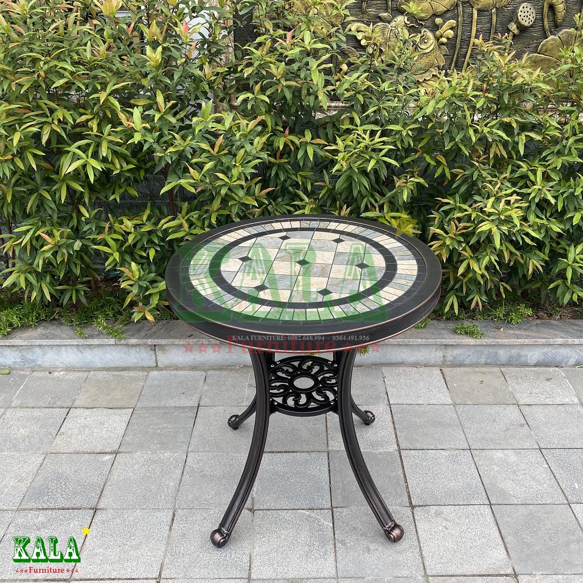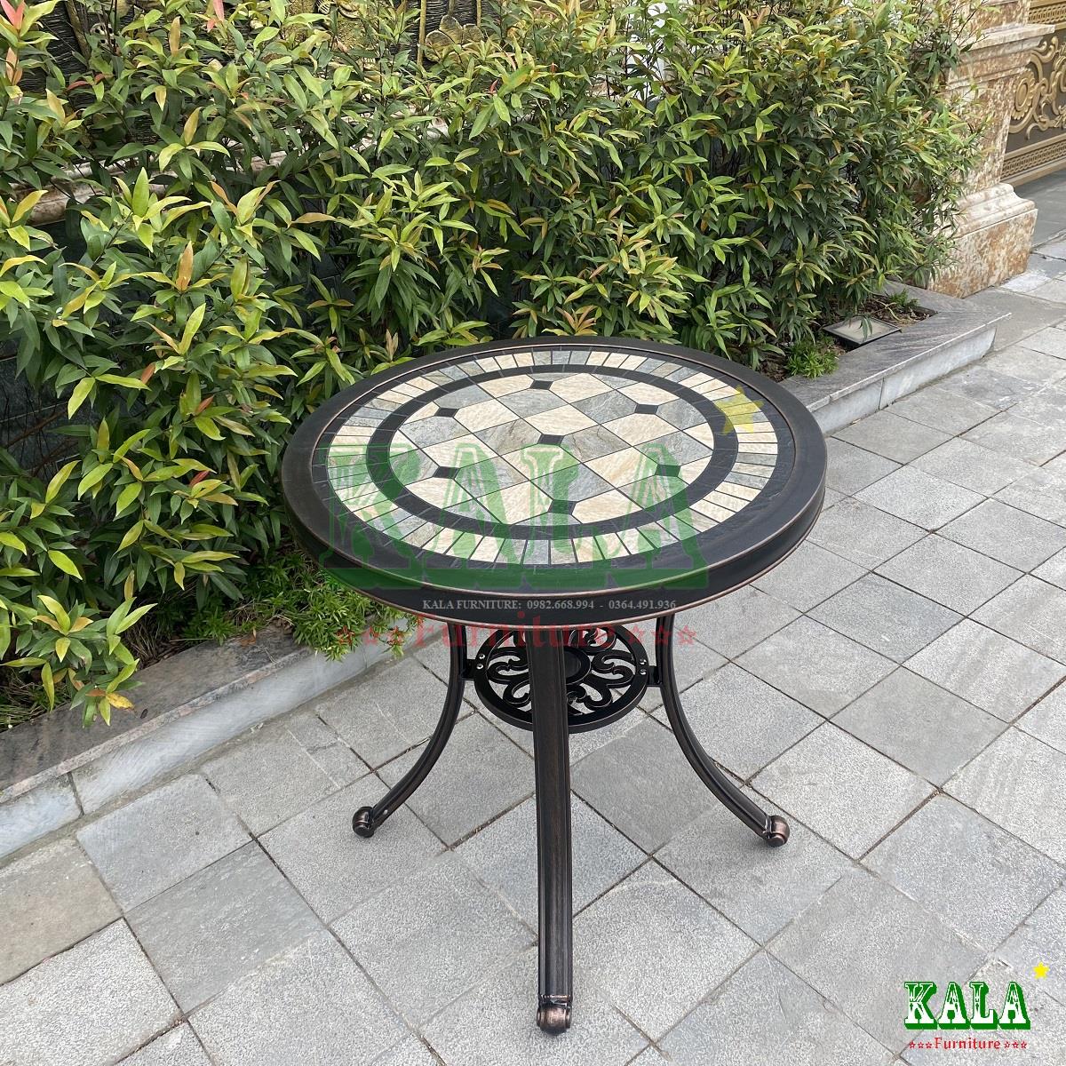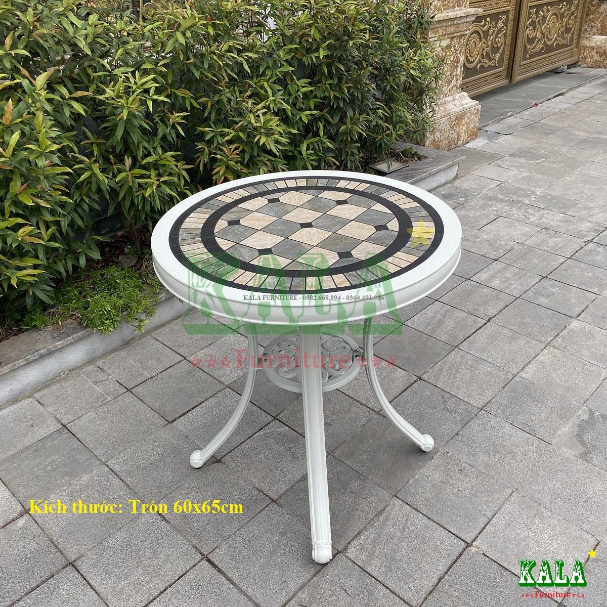 Bàn nhôm đúc mặt đá caro tròn 60cm là mẫu bàn uống nước, bàn cafe rất được ưa chuộng hiện nay bởi thiết kế hiện đại, đẹp mắt và còn nhỏ xinh có thể để ở nhiều không gian sân vườn, ban công khác nhau cho ngôi nhà.