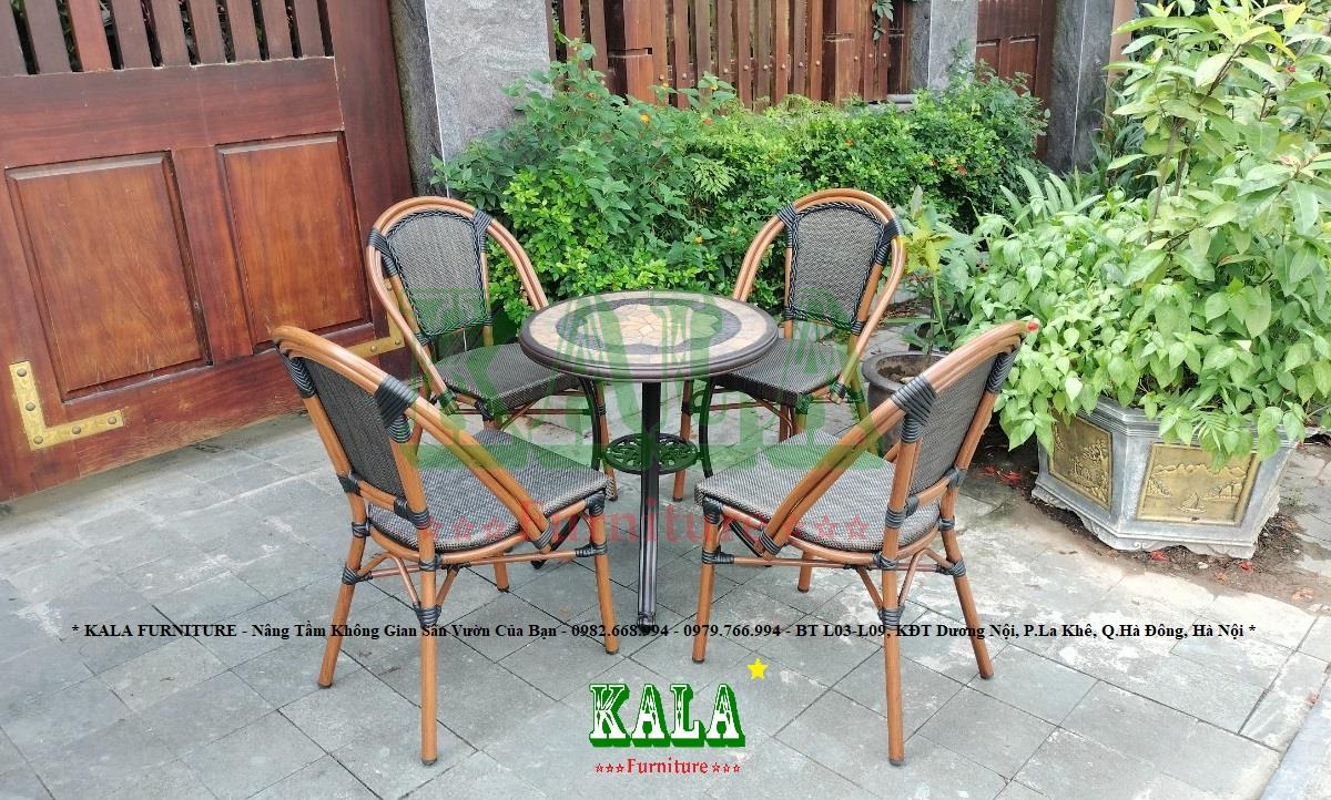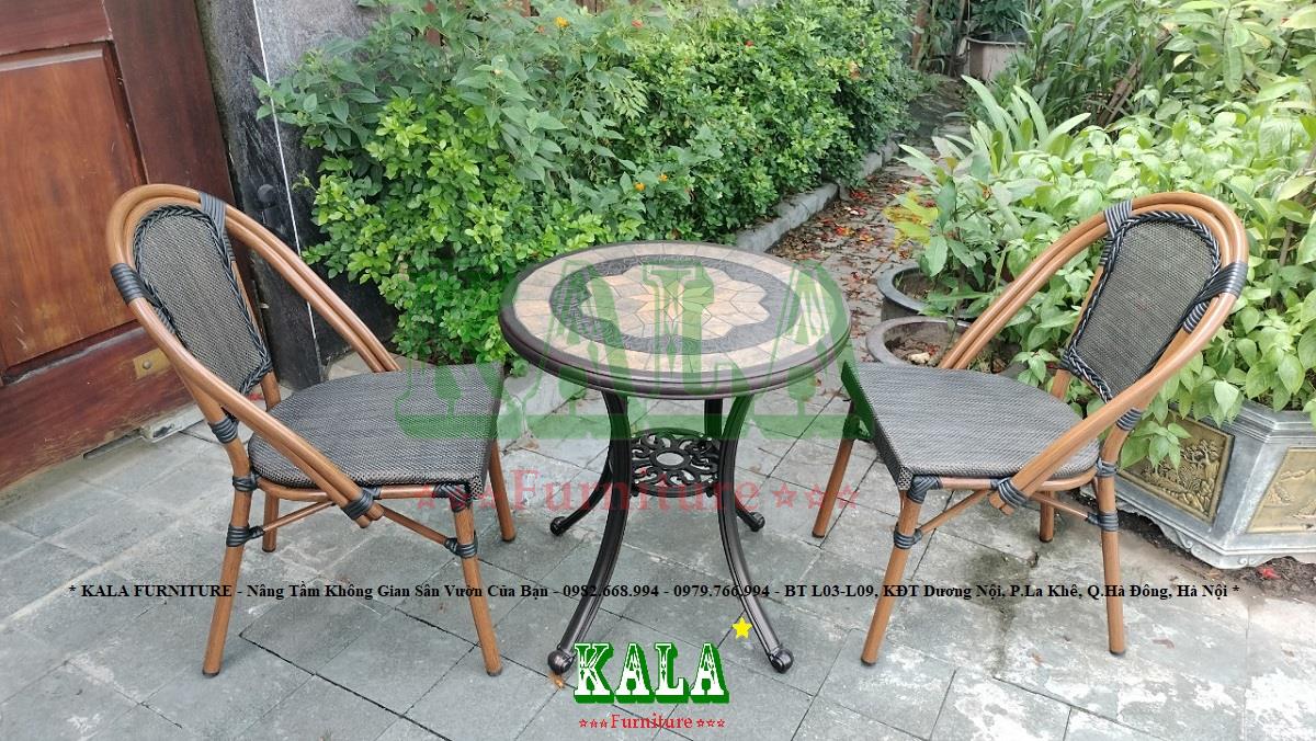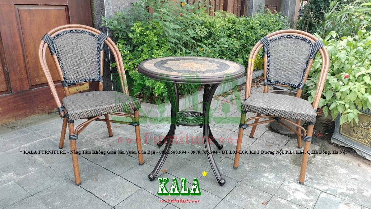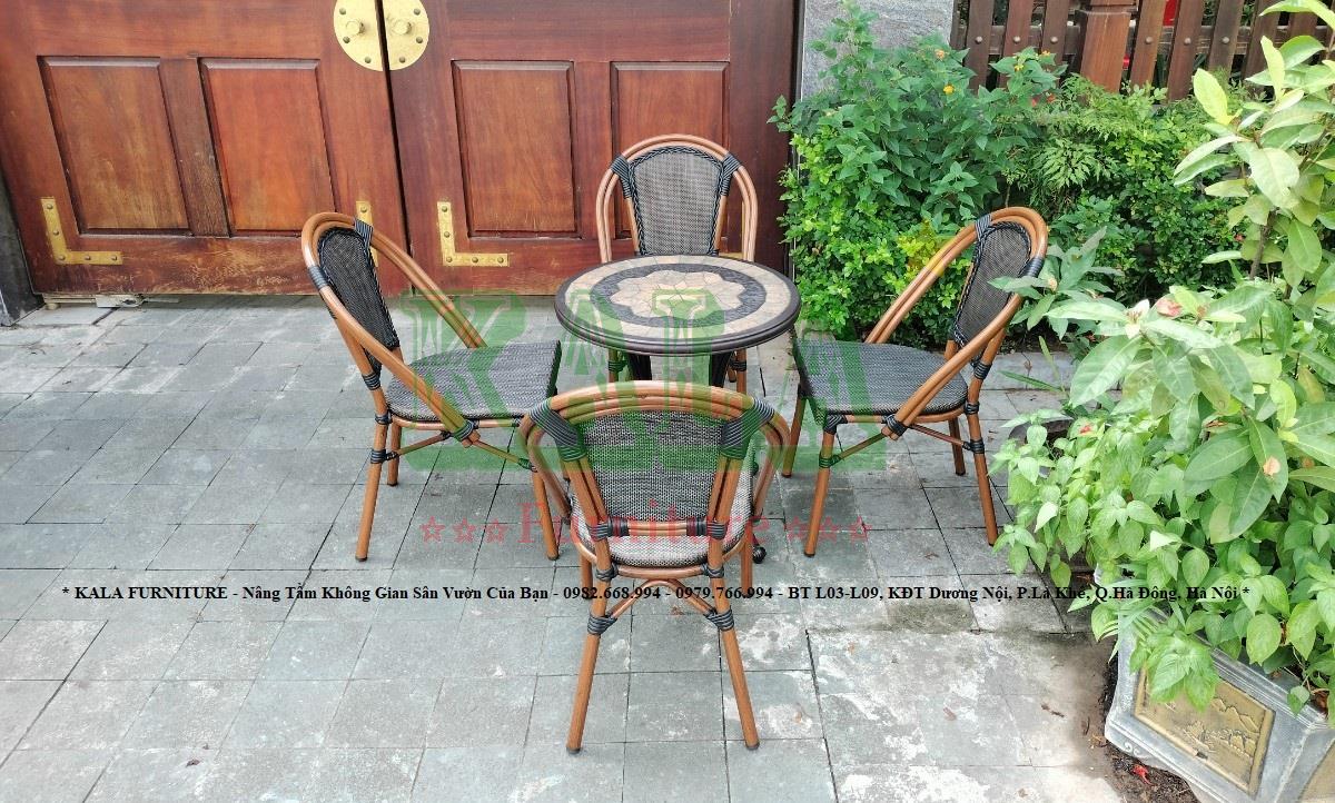 Mẫu bàn ghế được làm bằng khung nhôm phủ sơn tĩnh điện nên rất chắc chắn, cứng cáp, có độ bền cao, chịu được tốt các biến đổi của môi trường trong thời gian dài.