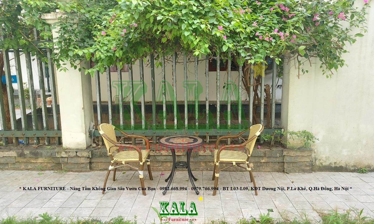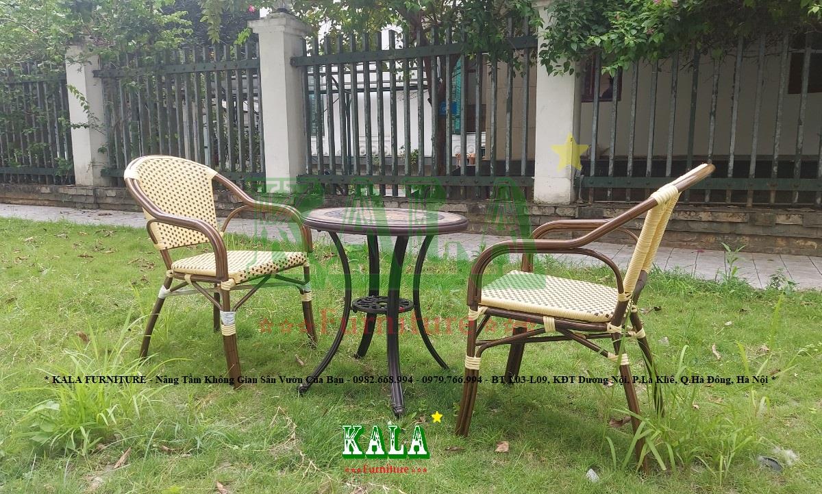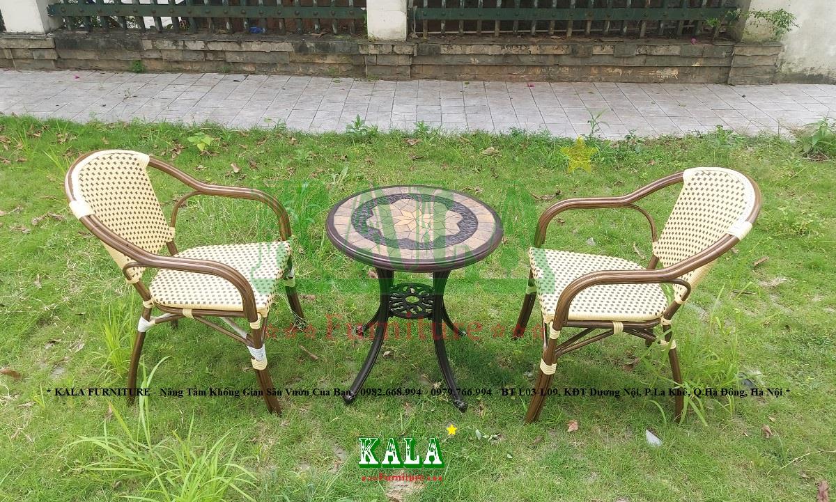 Bộ bàn ghế cafe khung nhôm vừa bền, thiết kế thời thượng sẽ đem đến cho không gian của bạn nguồn năng lượng tươi mới, sự trẻ trung. Bàn ghế có kích thước không quá lớn, phù hợp làm bàn ghế sân vườn, bàn ghế cho ban công, bàn ghế cafe ở một góc nhà.