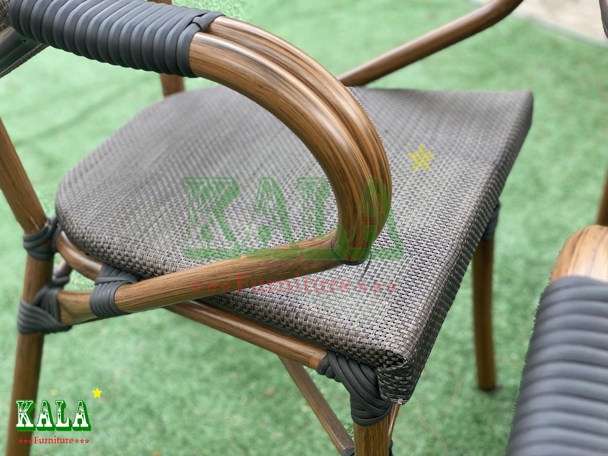 - Bộ bàn ghế cafe có khung được uốn mềm mại, không bị cứng nhắc và còn được phủ lớp sơn tĩnh điện làm cho bàn ghế bền hơn, không bị rỉ sét. Với mẫu ghế được phủ lớp sơn tĩnh điện công nghệ vân gỗ mới nhất hiện nay làm cho ghế trở nên sang trọng hơn.