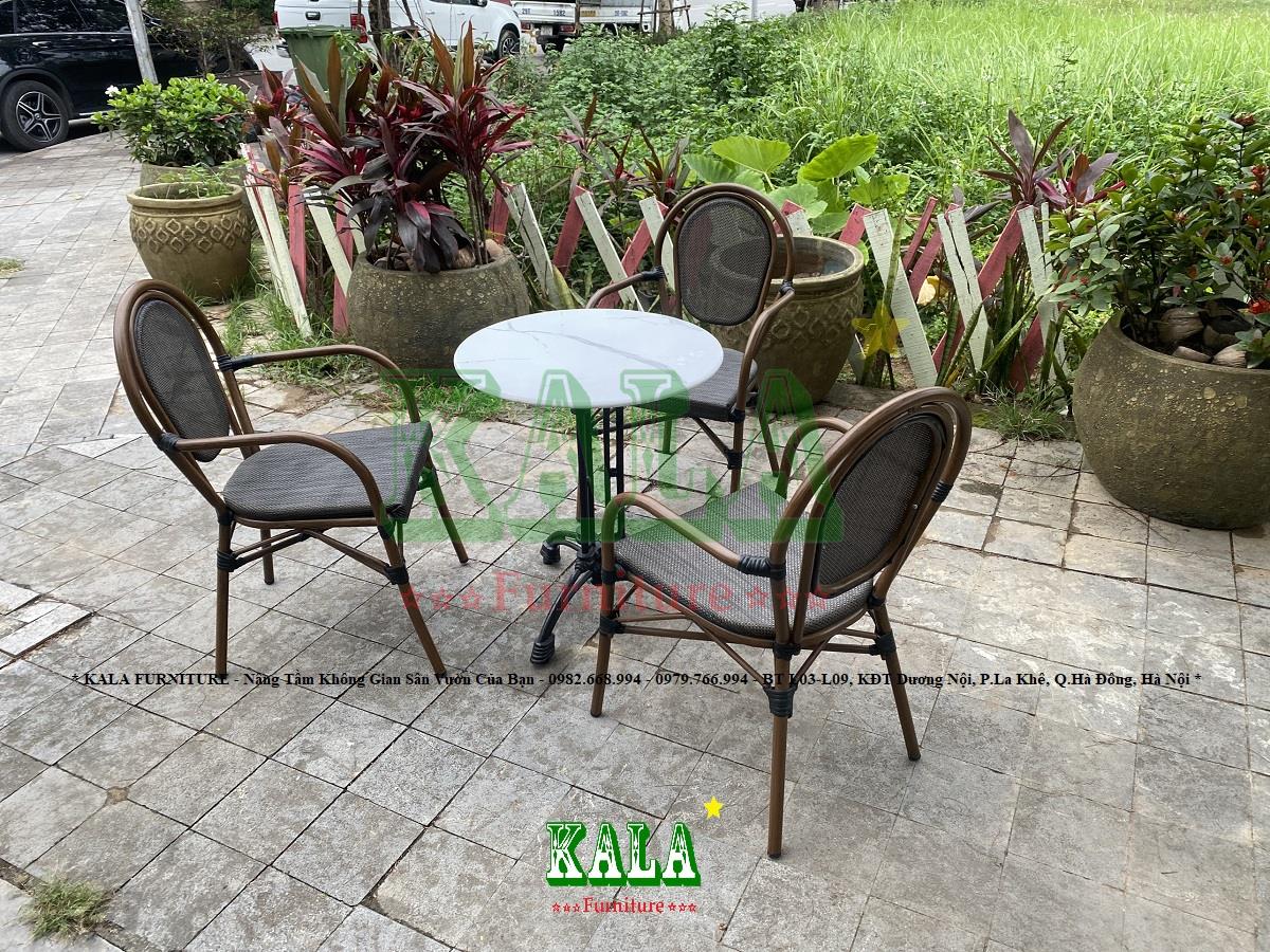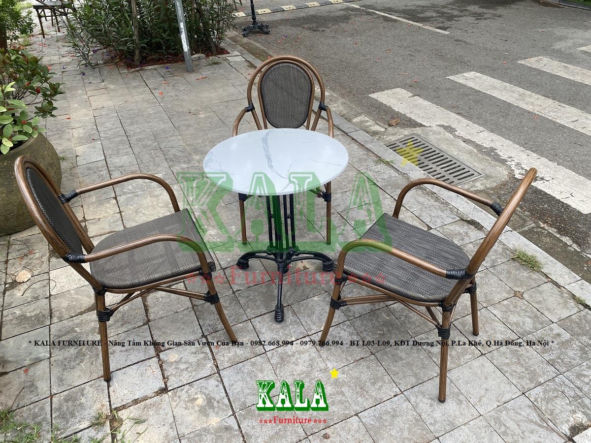 Bạn đang loay hoay không biết tìm bộ bàn ghế nào dùng ngoài trời vừa bền vừa đẹp? Vậy bộ bàn ghế cafe BGC-TL05 là lựa chọn cho bạn. Bộ bàn ghế được kết hợp từ những vật liệu bền nhất như gang đúc, mặt đá, nhôm,.... rất phù hợp dùng cho ngoài trời mà không lo bị gỉ sét, gãy hỏng.