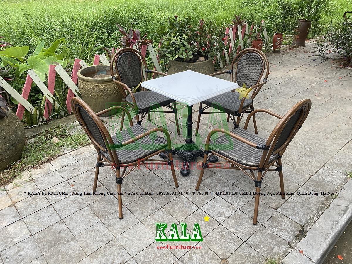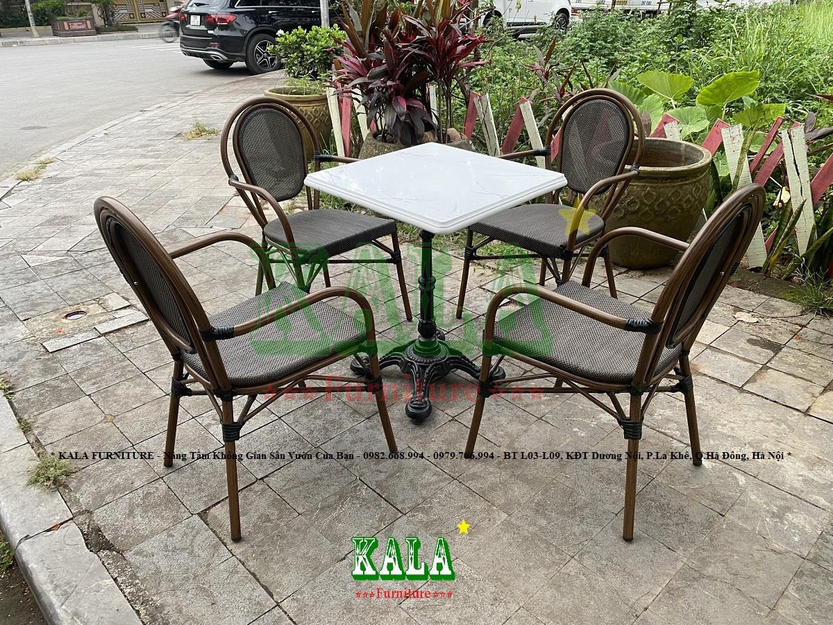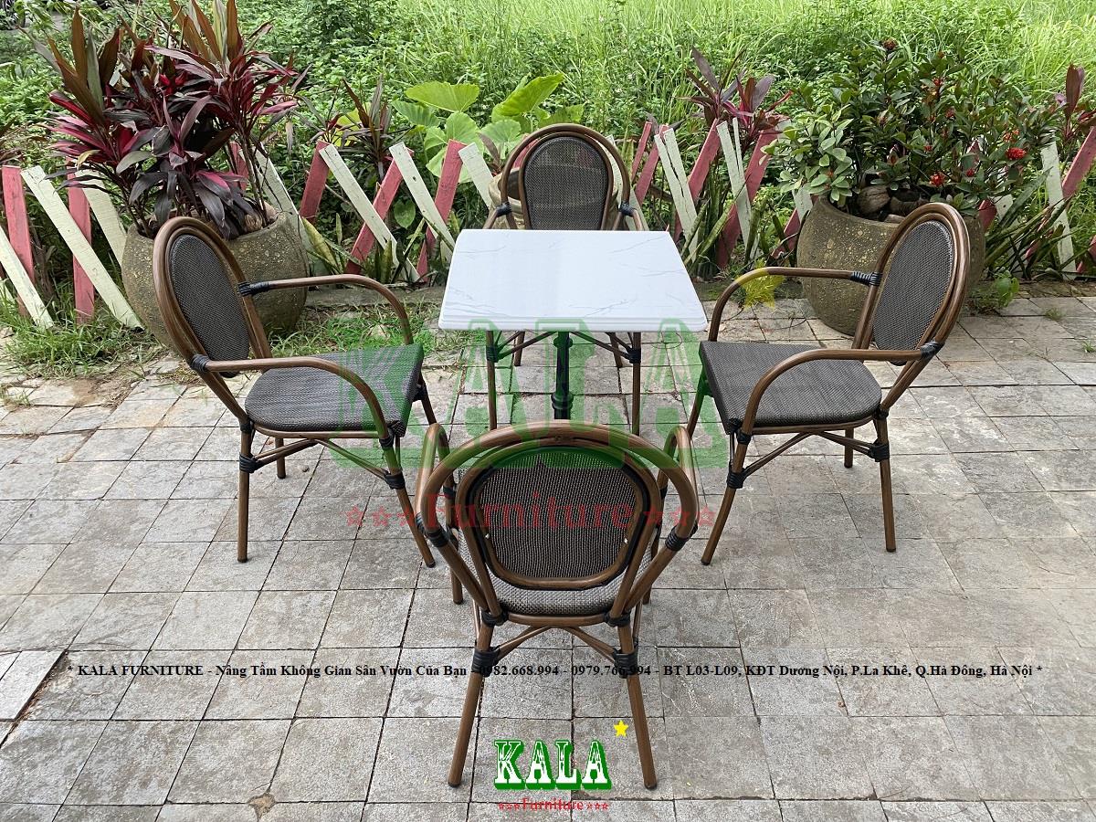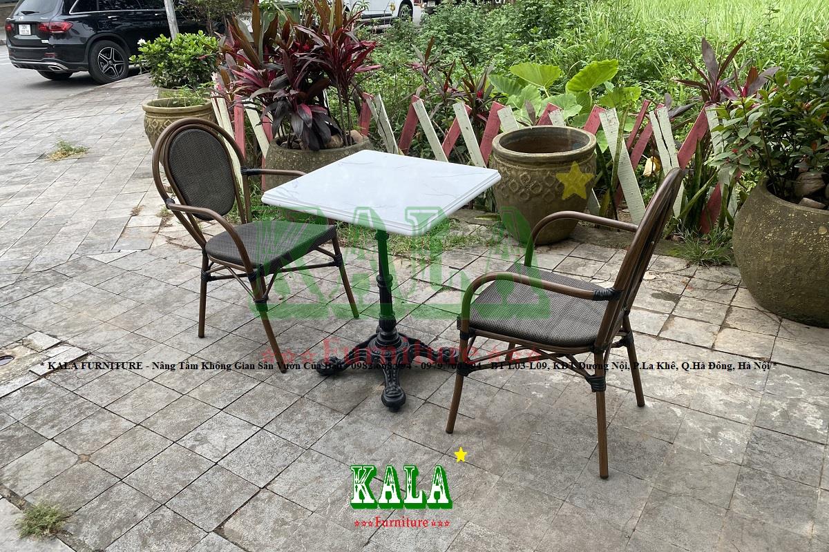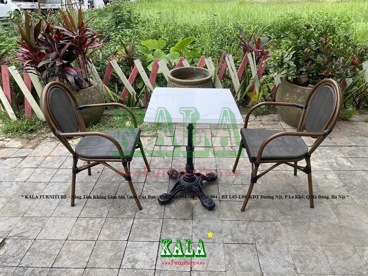 Đối với không gian sân vườn của gia đình hay các không gian ngoài trời của các quán cafe, nhà hàng,... thì việc lựa chọn mẫu bàn ghế phải ưu tiên chọn các mẫu có độ bền cao. Bởi dưới tác động của biến đổi môi trường các mẫu bàn ghế sẽ rất nhanh bạc màu, gỉ sét, gãy hỏng. Bạn đang phân vân không biết lựa chọn mẫu bàn ghế nào chất lượng? Ở đâu bán những mẫu bàn ghế chất lượng? Vậy đến với Nội thất KALA để tham khảo mẫu bàn ghế cafe BGC-TL07 ngay thôi.