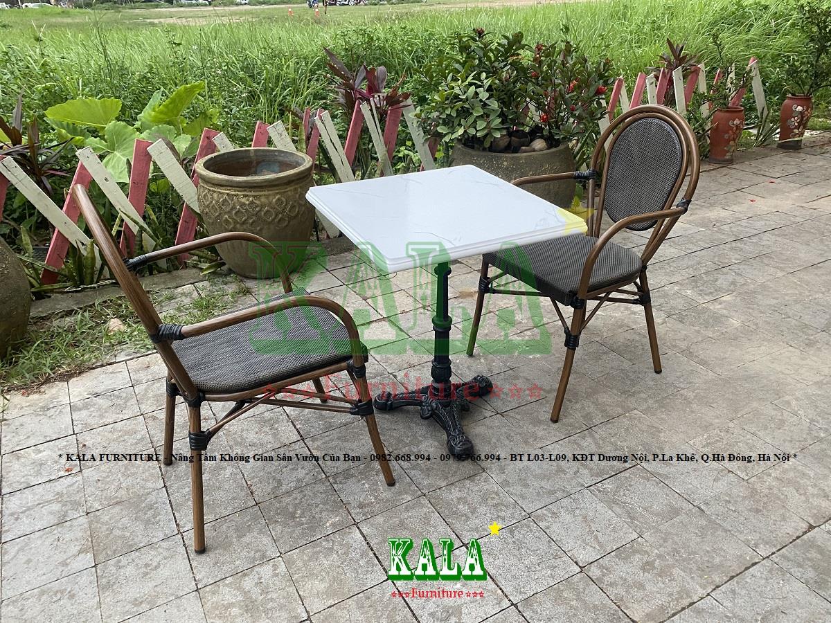 - Khung ghế được làm bằng ống nhôm vô cùng dày dặn để tăng độ vững chãi cho ghế khi ngồi. Phía ngoài còn được phủ một lớp sơn tĩnh điện công nghệ in vân gỗ vừa làm cho ghế bền trước nắng mưa, oxi hoá trong không khí không bị gỉ sét khi bị gãy hỏng vừa tăng tính thẩm mỹ, sang trọng.
