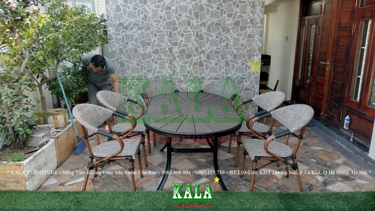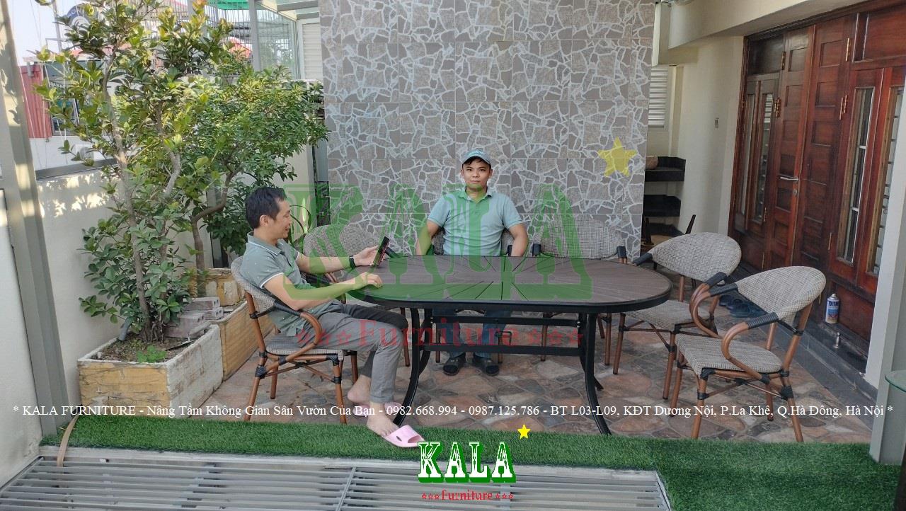 - Chất liệu: Khung nhôm, nan mặt bàn và mặt ghế là nan Polywood