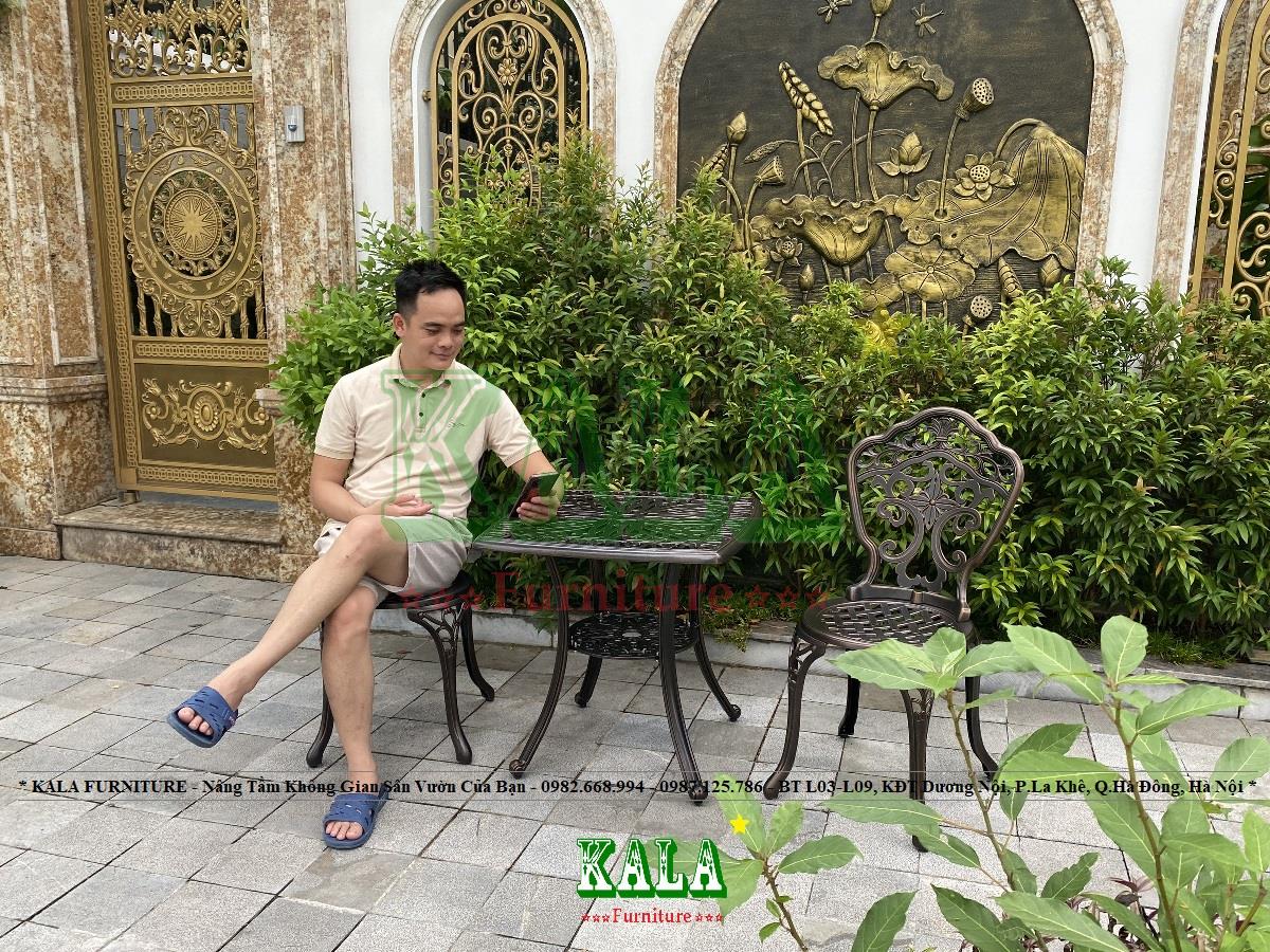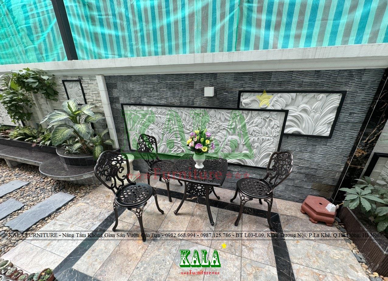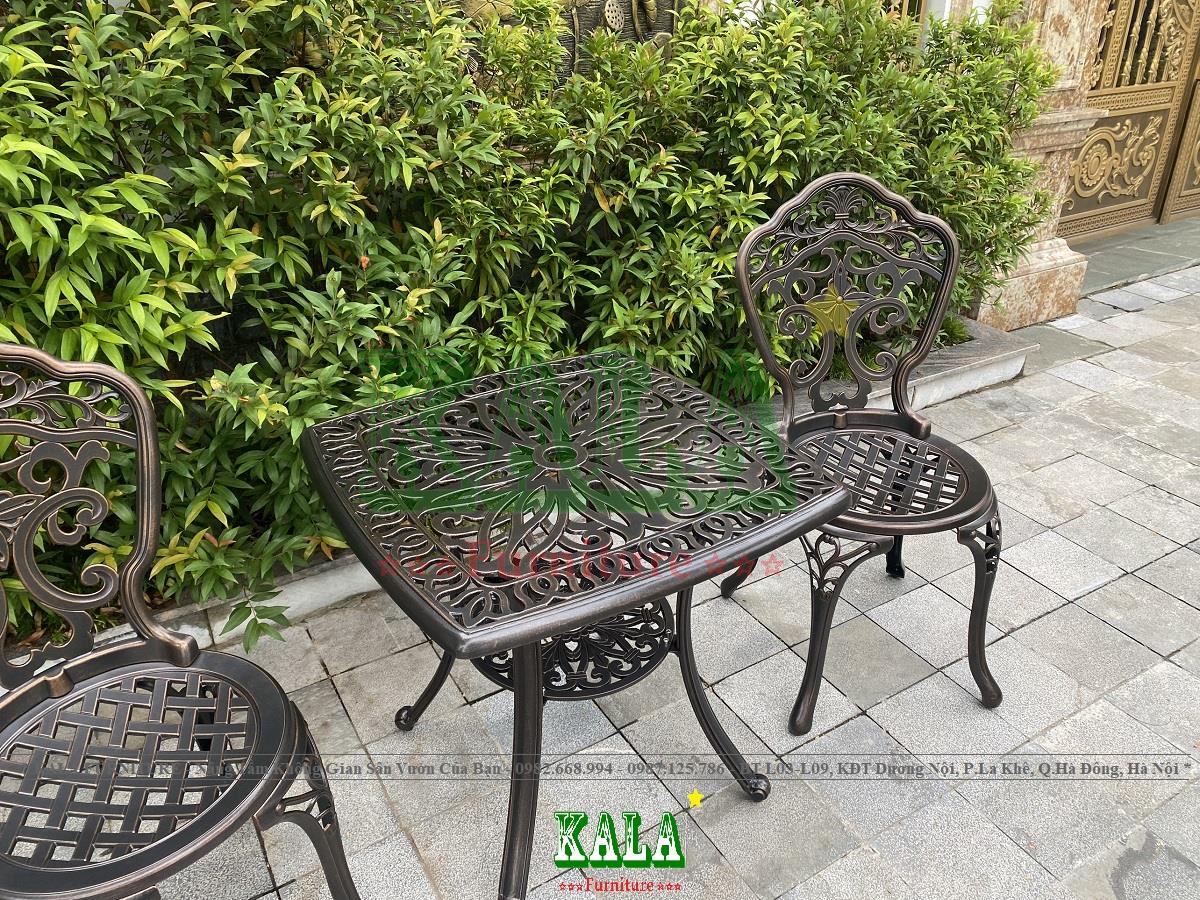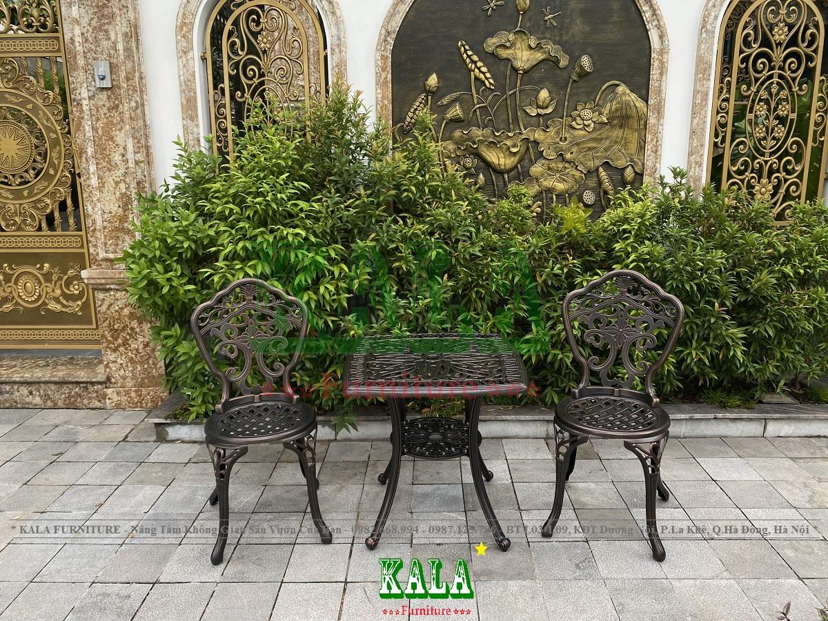 Bộ bàn ghế nhôm đúc BGND-V65VMKT có thiết kế lắp ghép đơn giản, khung được làm bằng nhôm đúc chắc chắn, hoạ tiết hoa văn được đúc tinh xảo siêu đẹp. Bộ bàn ghế có kích thước nhỏ nhắn phù hợp cho không gian sân vườn trước hiên nhà, ban công, sân thượng,....