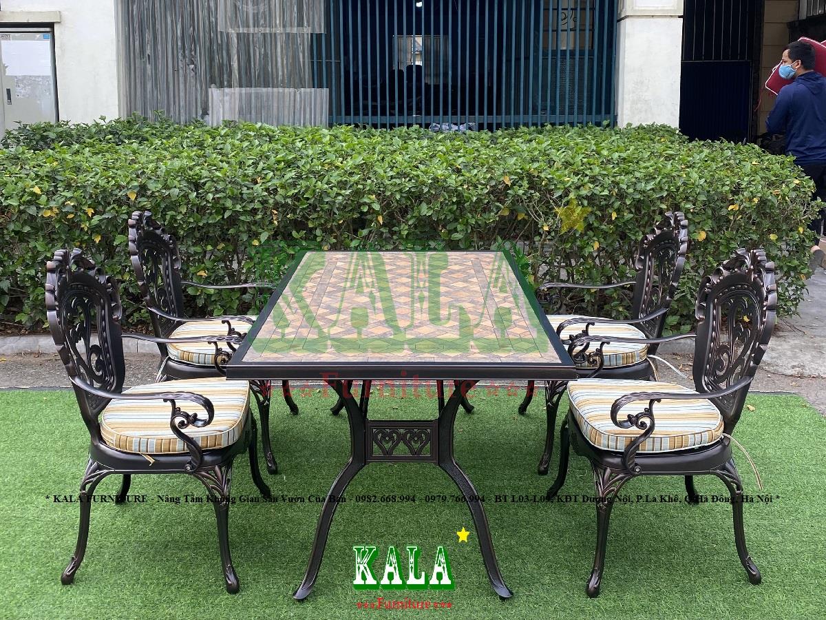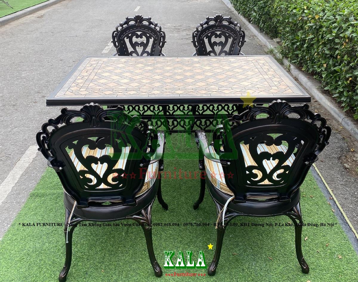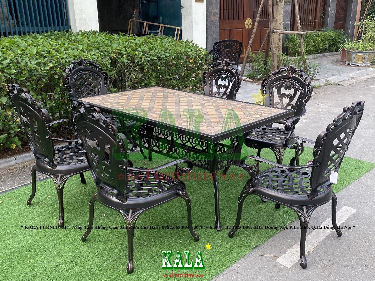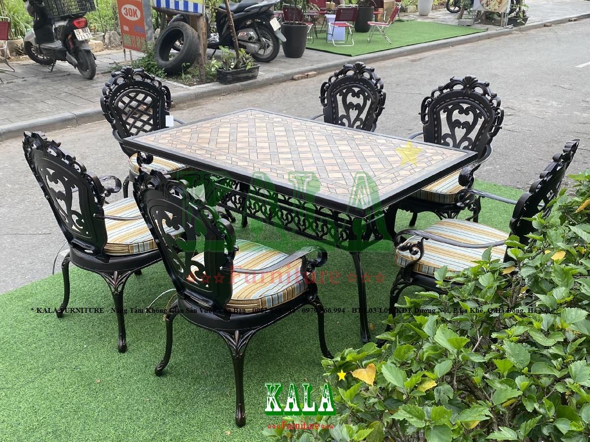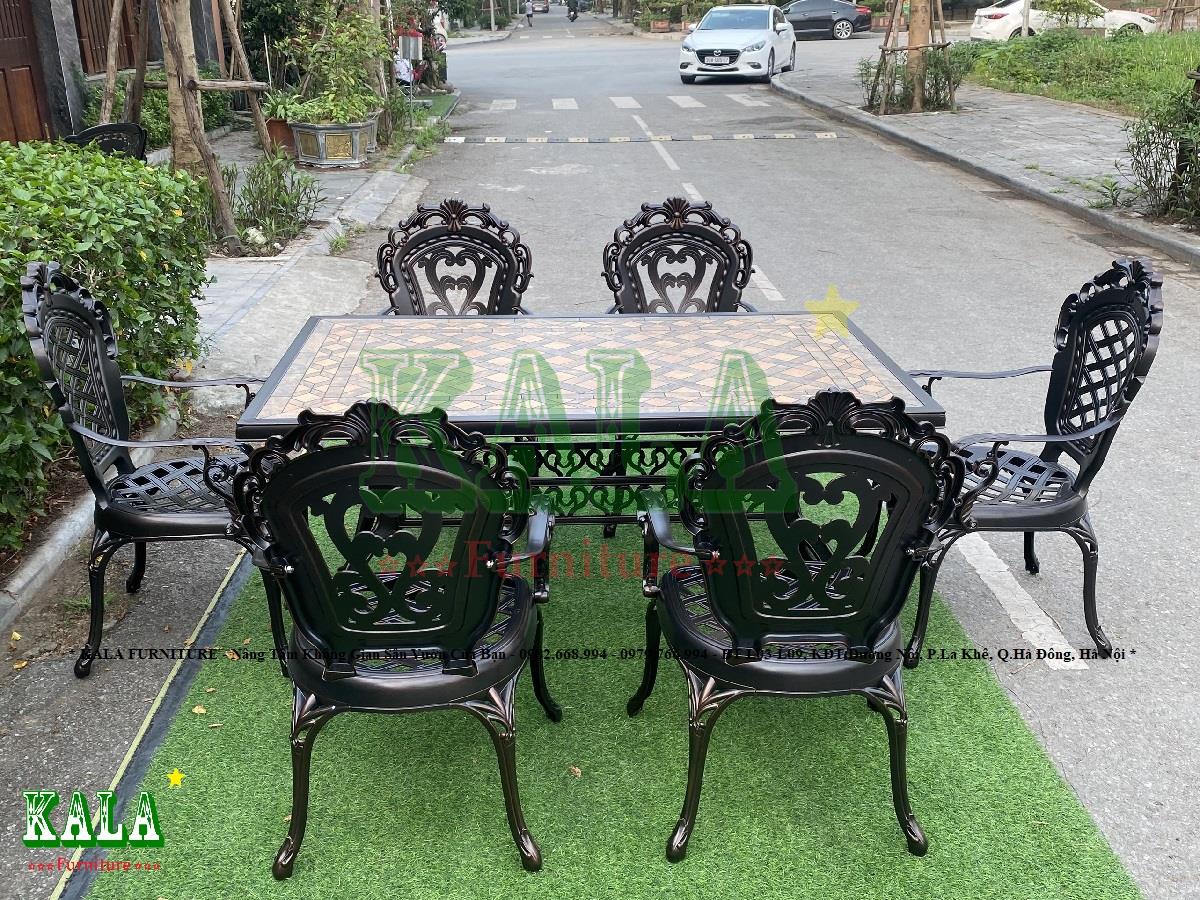 - Toàn bộ khung bàn và ghế đều được làm bằng nhôm đúc vô cùng dày dặn, cứng cáp làm cho bàn ghế thêm phần chắc chắn. Bên ngoài chúng còn được phủ thêm 3 lớp sơn tĩnh điện để cho bàn ghế có màu bóng hơn, đẹp mắt, sang trọng hơn và cũng để bảo vệ bàn ghế đưới tác động, biến đổi của môi trường không bị gỉ sét, gãy hỏng.