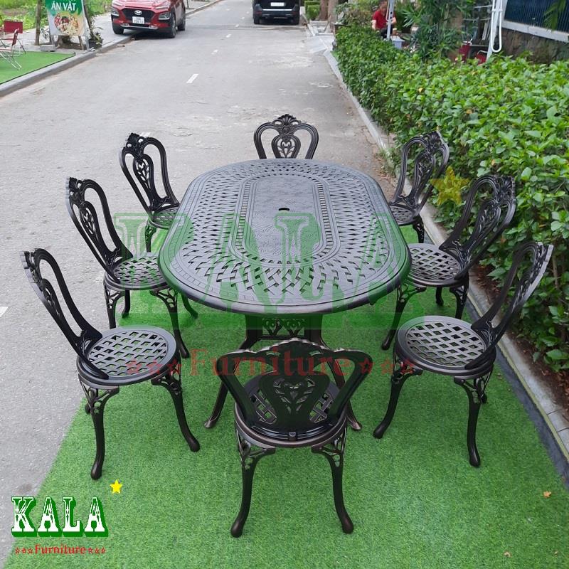 Bạn đang có không gian sân vườn rộng rãi, gia đình có đông thành viên thì không nên bỏ lỡ qua bộ bàn ghế nhôm đúc sân vườn BGND-OV10518TT. Bộ bàn ghế có diện tích sử dụng lớn, phù hợp cho 6-10 người dùng.