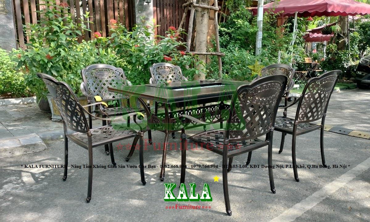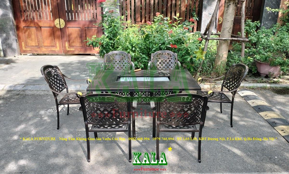 Bộ bàn ghế nhôm đúc sân vườn kèm bếp nướng BGND-BBQ9015QT dùng cho gia đình có không gian sân vườn rộng thì siêu tiện lợi lại còn đẹp mắt. Bộ bàn ghế vừa có thể làm bàn ghế uống nước vừa có thể làm bàn ghế ăn, tổ chức tiệc tùng xum họp gia đình hay tụ tập bạn bè tới nhà chơi.