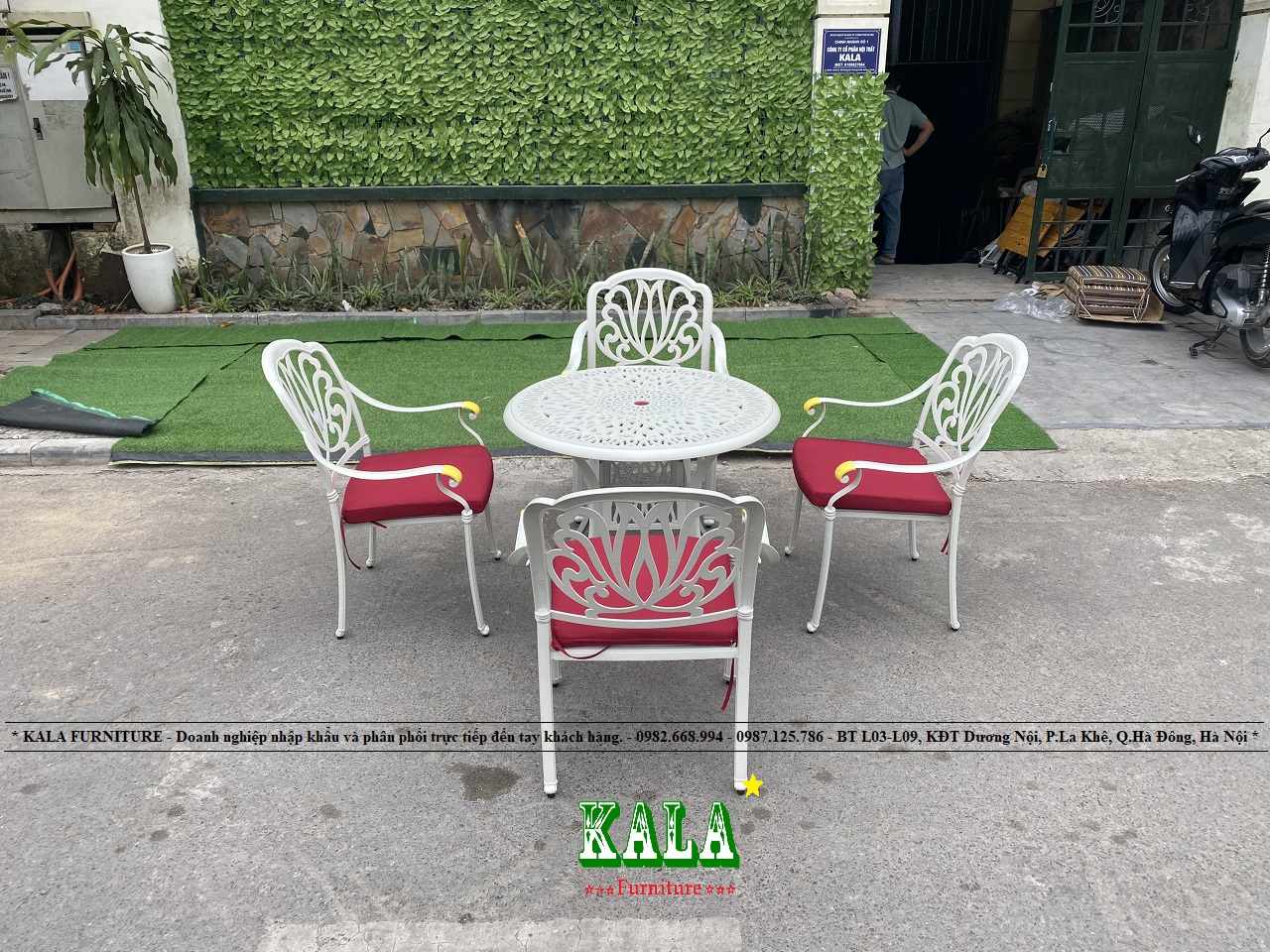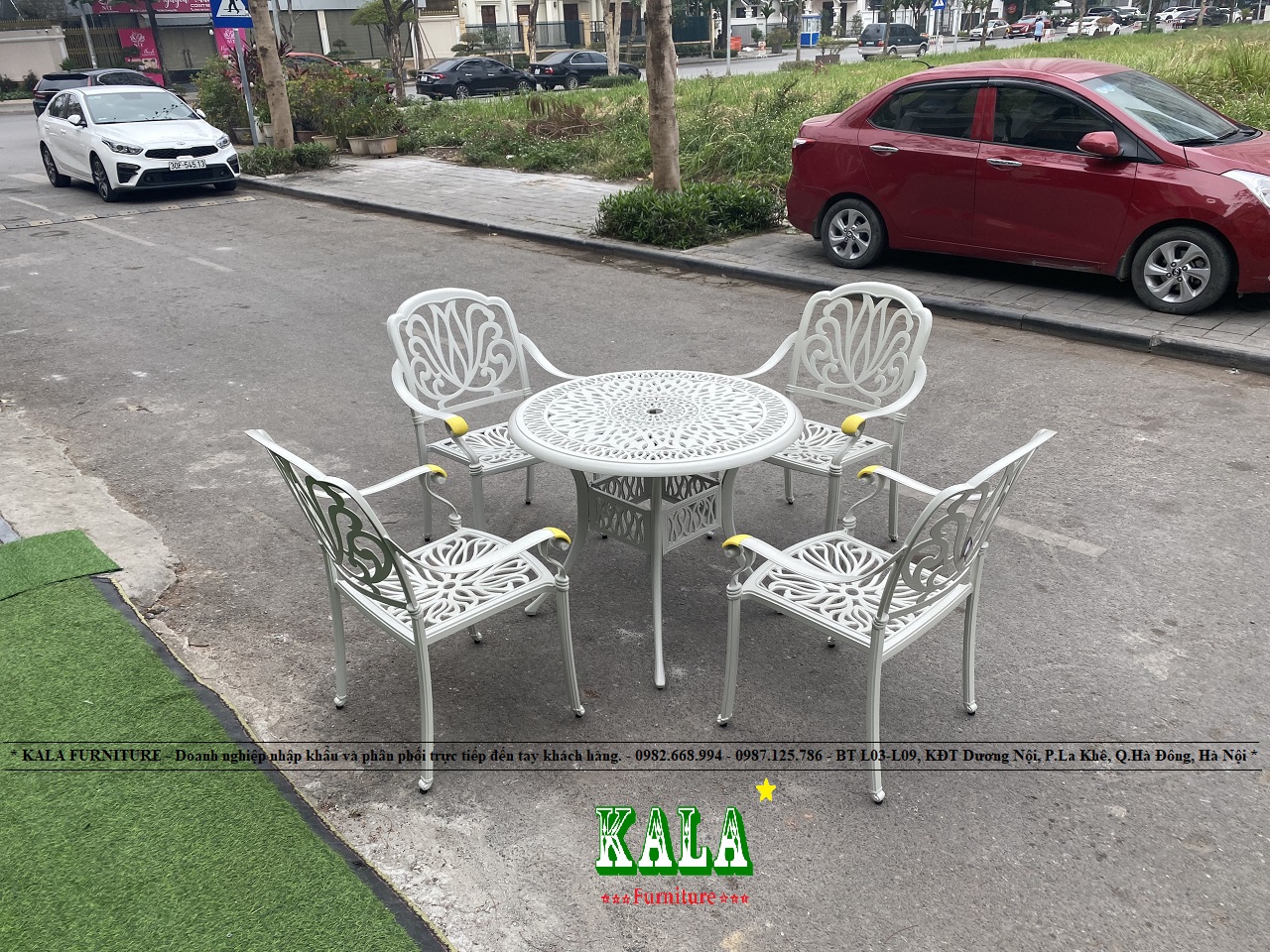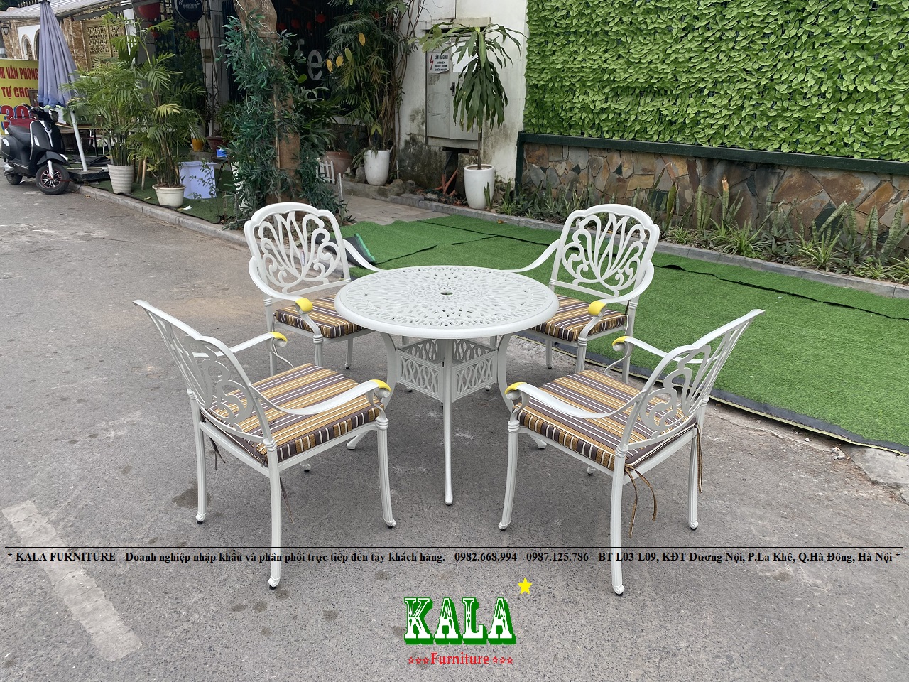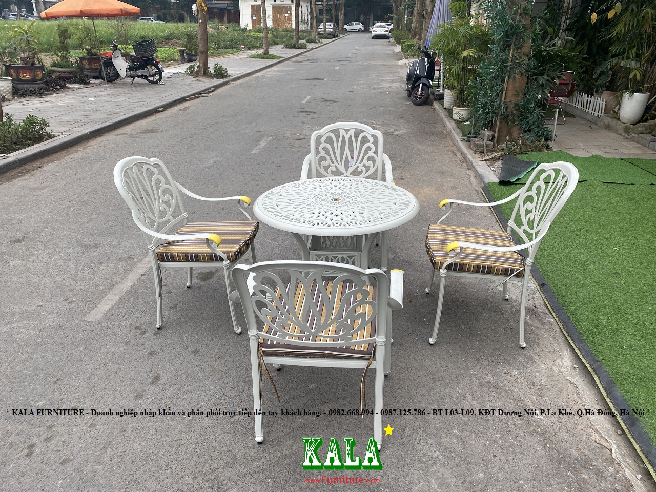 Nhiều người hiện nay lựa chọn cho không gian sân vườn của mình bàn ghế nhôm đúc màu trắng thay cho màu đồng trước đây. Màu trắng làm cho không gian trở nên nổi bật hơn, bắt mắt hơn, mang đến sự thanh lịch, tươi mới. Các hoạ tiết hoa văn tinh tế, cổ điển, sang trọng.