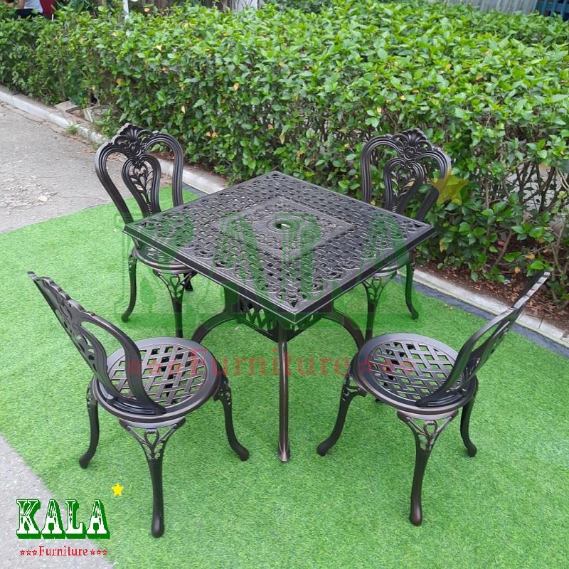Nếu bạn thích không gian cổ điển, sang trọng thì đừng bỏ qua mẫu bàn ghế nhôm đúc nhập khẩu. Mẫu bàn ghế nhôm đúc này được thiết kế nhiều hoạ tiết hoa văn vô cùng tinh xảo, bắt mắt kết hợp cùng màu đồng của nhôm mang đến cho không gian sự cổ điển, sang trọng. Một trong số đó không thể không thể không kể đến bộ bàn ghế sân vườn BGND-V80TT.