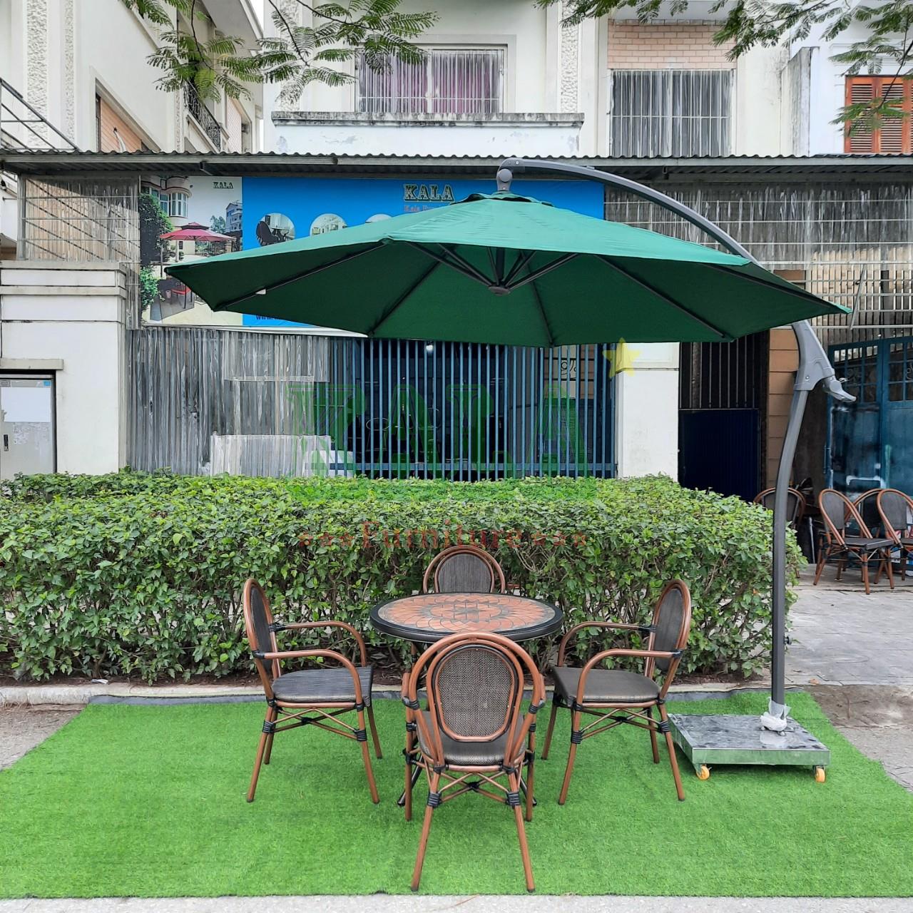 - Với không gian ngoài trời của gia đình, quán cafe,... chúng ta có thể dùng thêm các mẫu ô lệch tâm đi cùng, dùng che nắng mưa, để khi chúng ta đang quây quần cùng gia đình, bạn bè mà có nắng mưa cũng không bị ảnh hưởng.