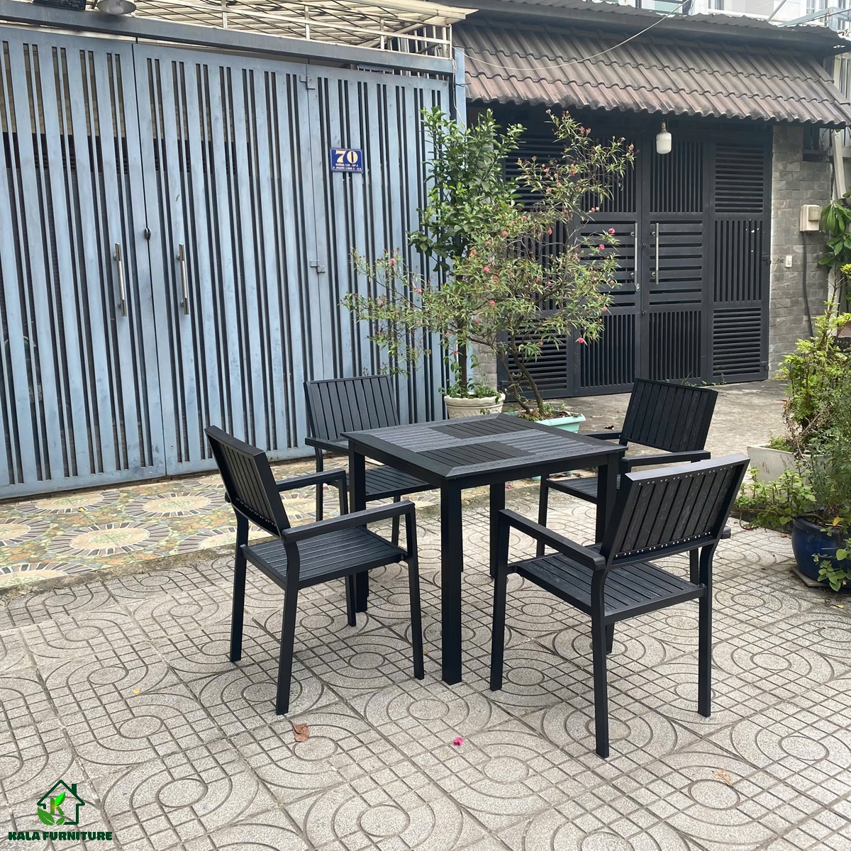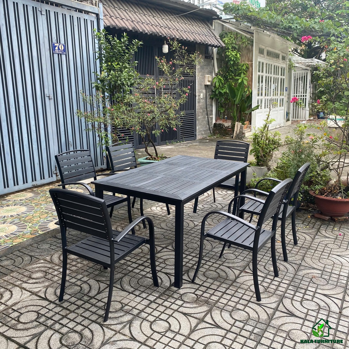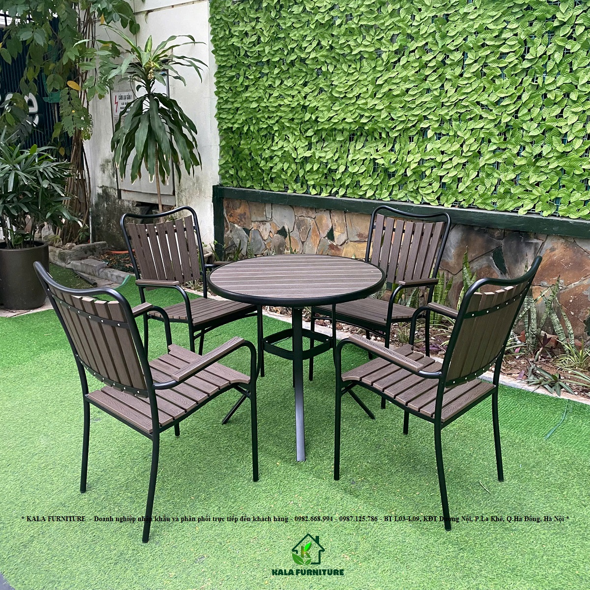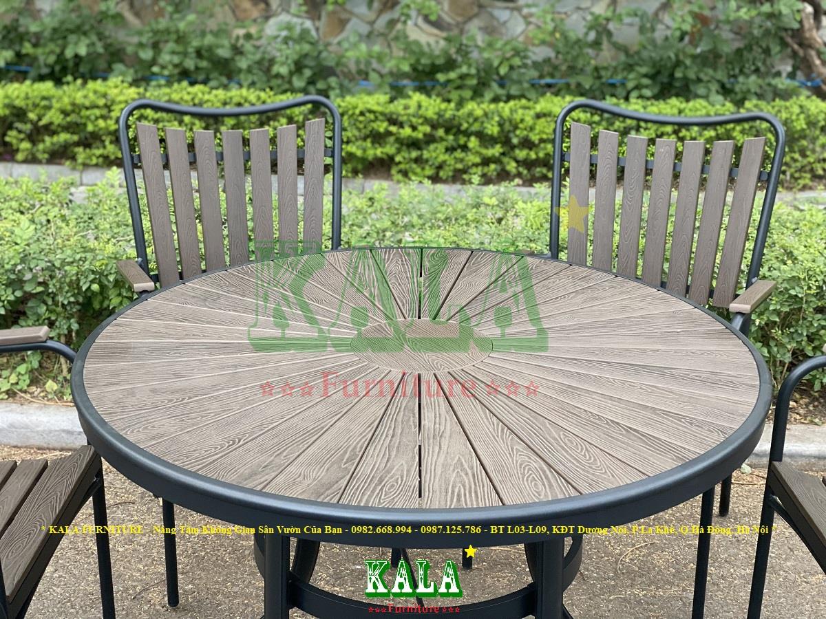 - Chất liệu: Khung bằng nhôm, phần mặt làm bằng nhựa polywood giả gỗ.