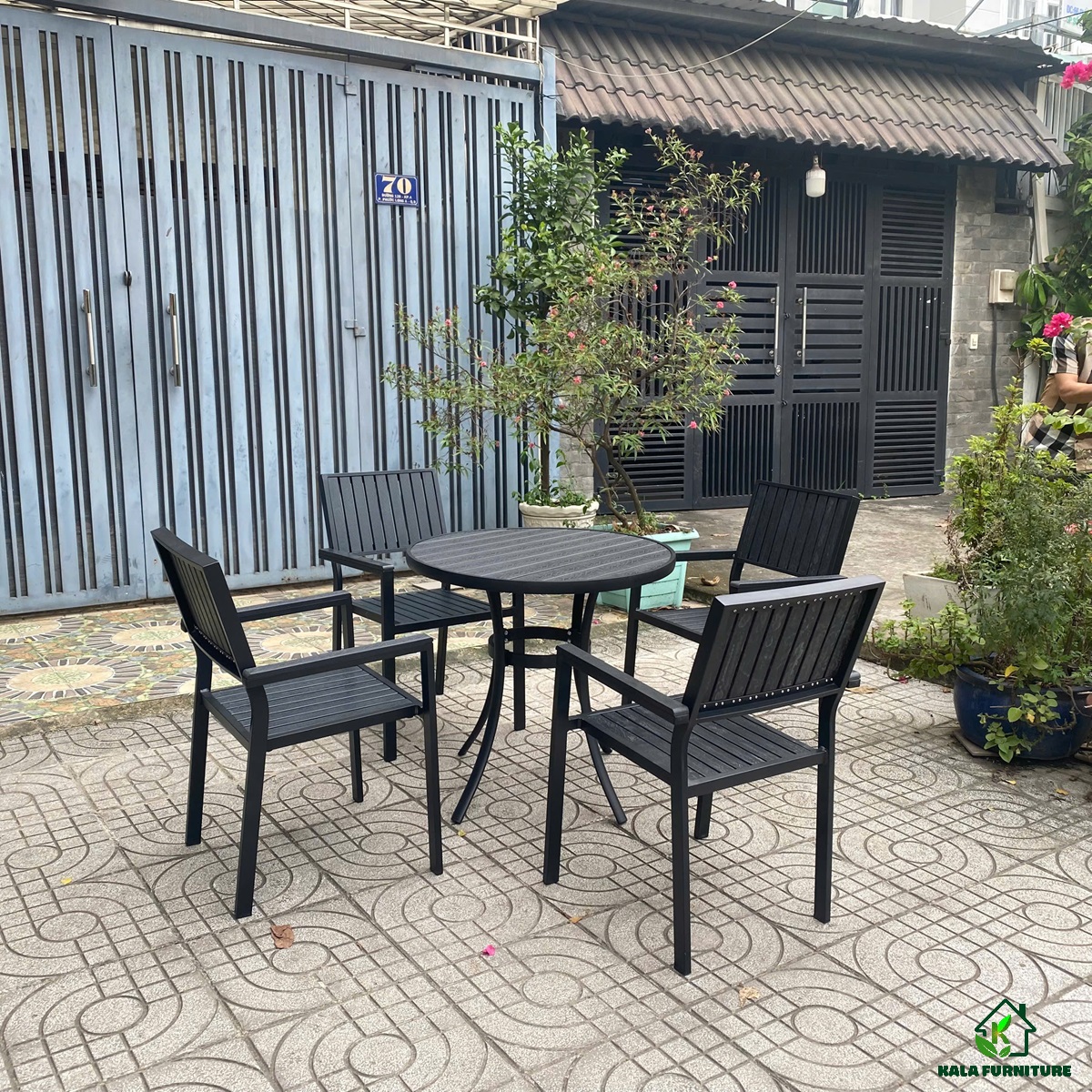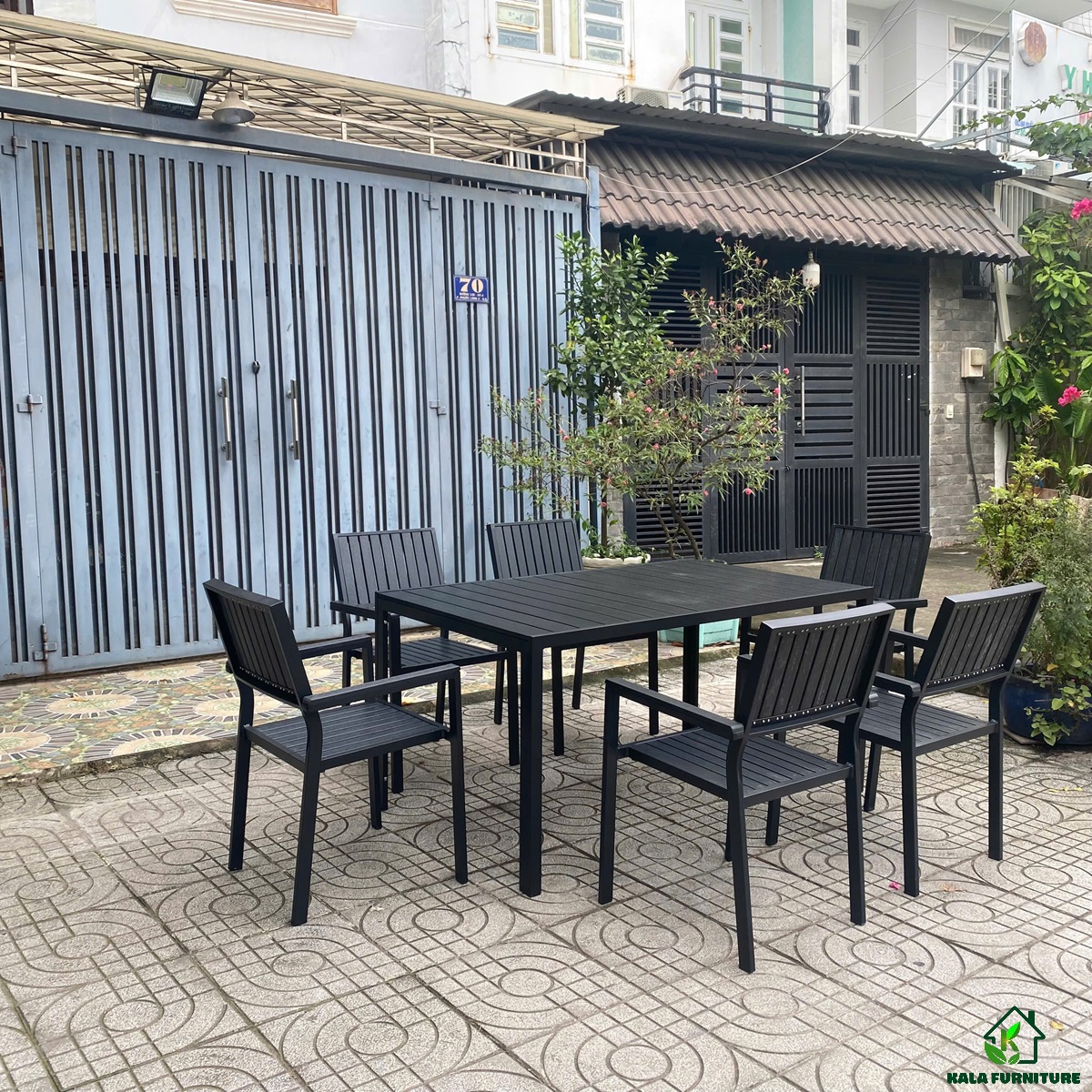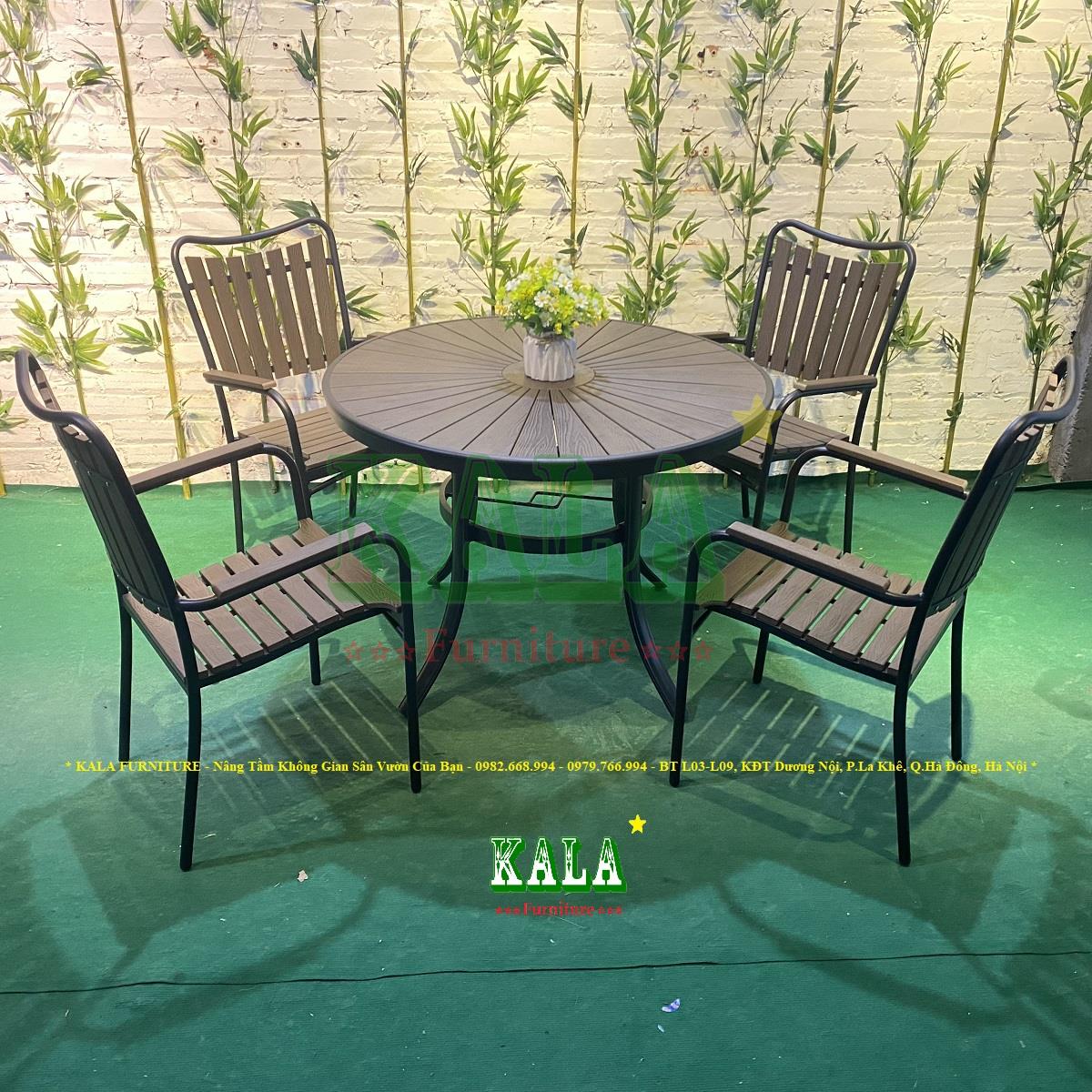 - Chất liệu: Khung bằng nhôm, phần mặt làm bằng nhựa polywood giả gỗ.