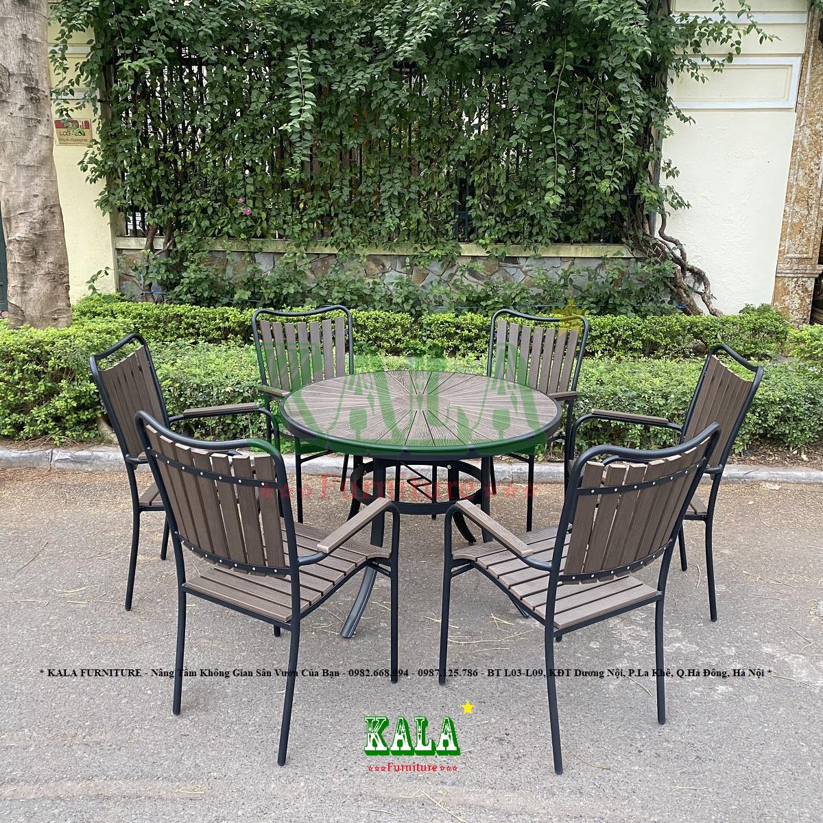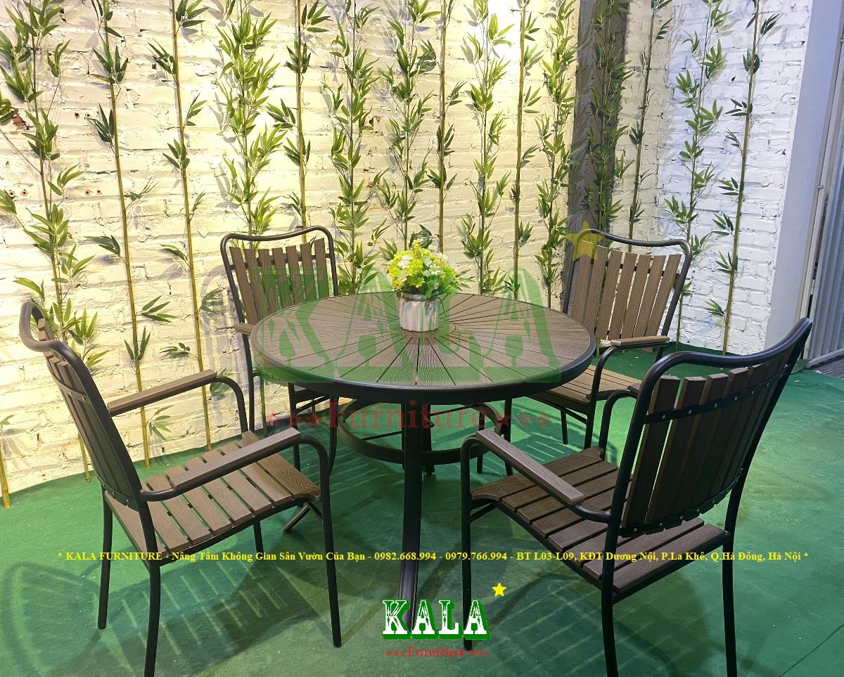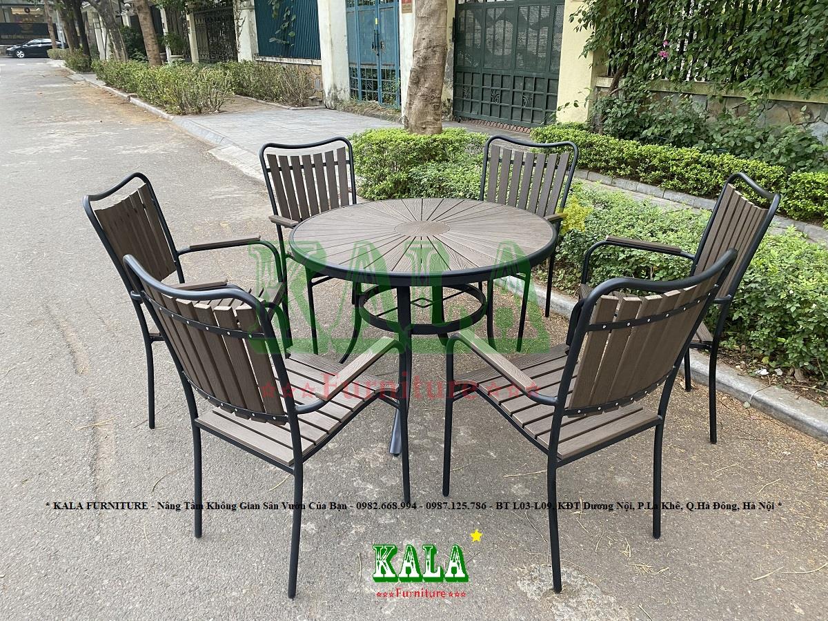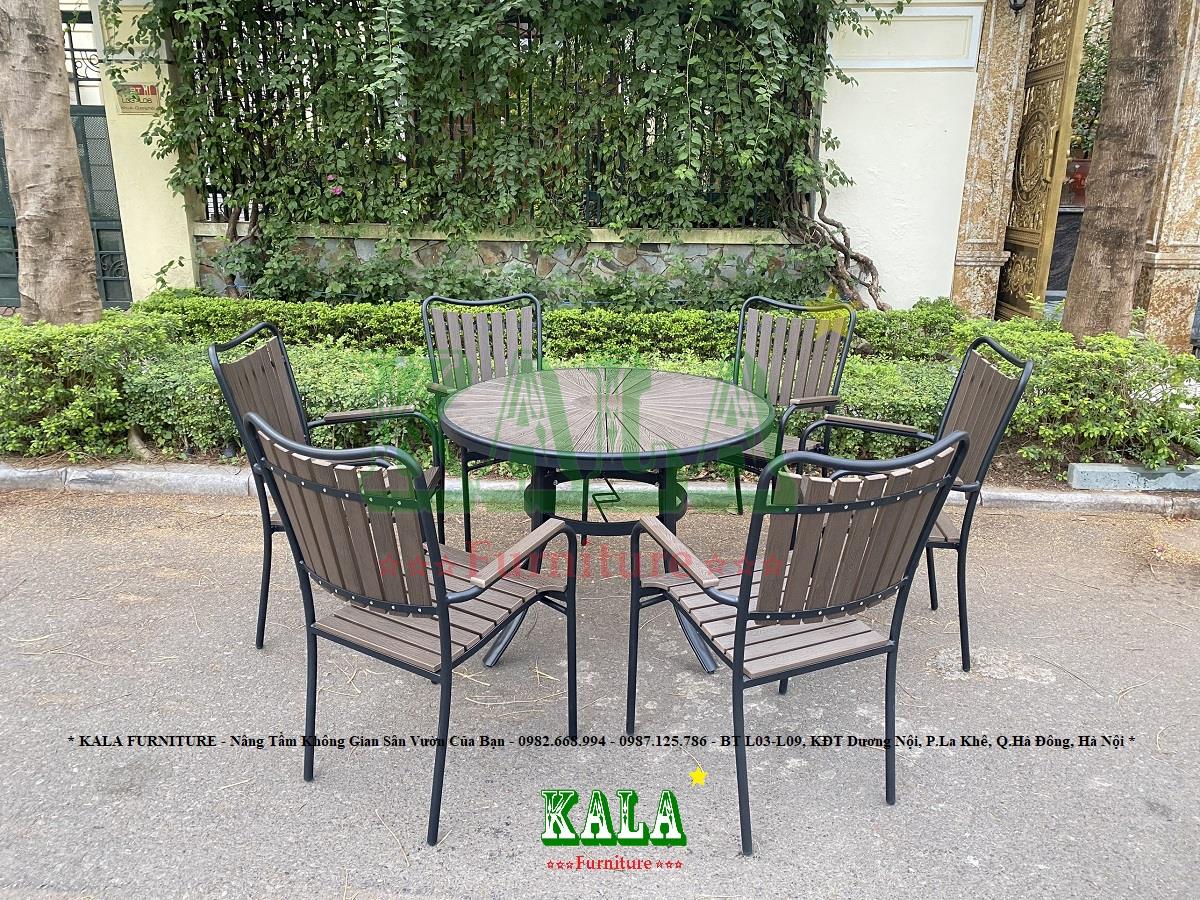 - Chất liệu: Khung bằng nhôm, phần mặt làm bằng nhựa polywood giả gỗ.