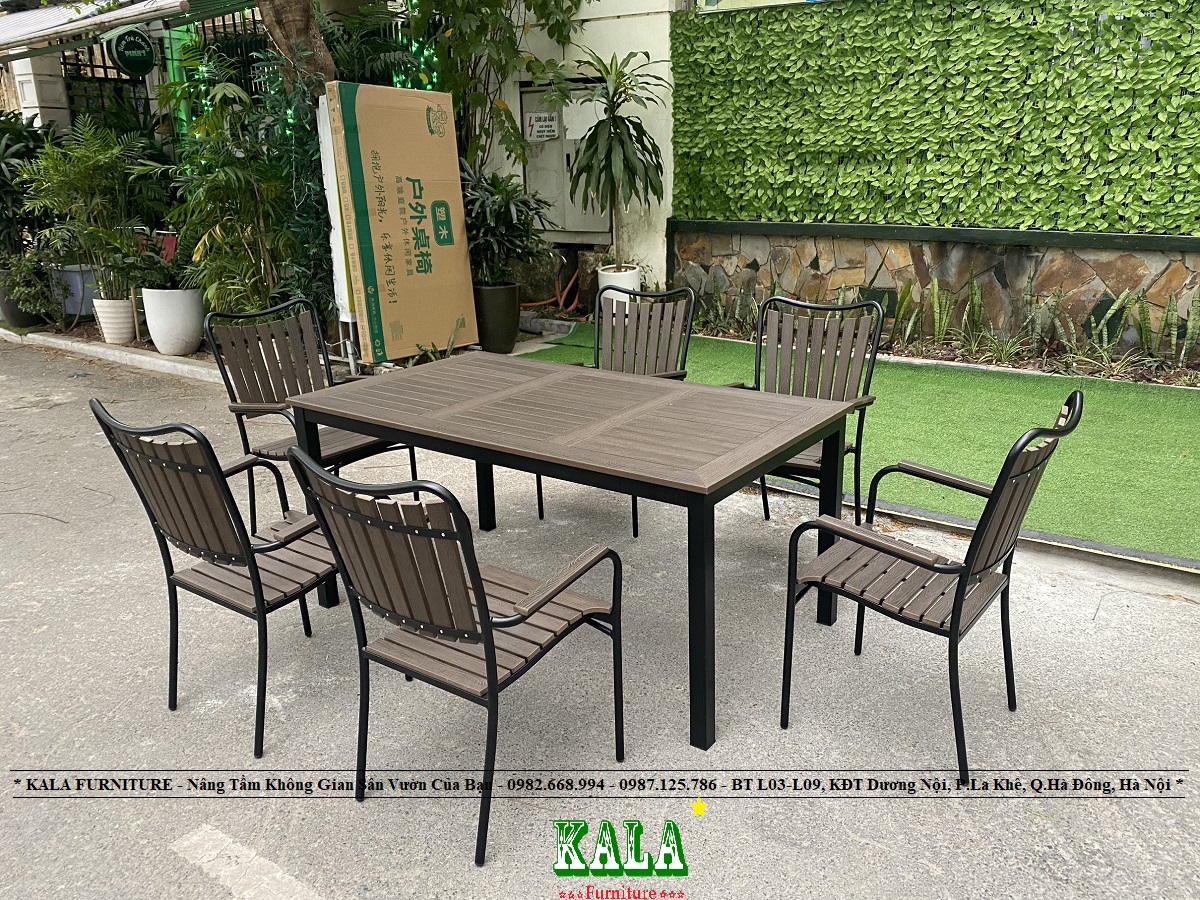 Bộ bàn ghế sân vườn CPS-NK13 của KALA Furniture cũng được làm từ chất liệu polywood (nhựa giả gỗ cao cấp) sẽ đem đến cho không gian của bạn đồng bộ và sang trọng.