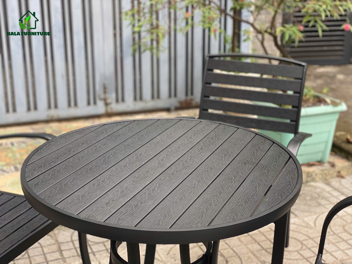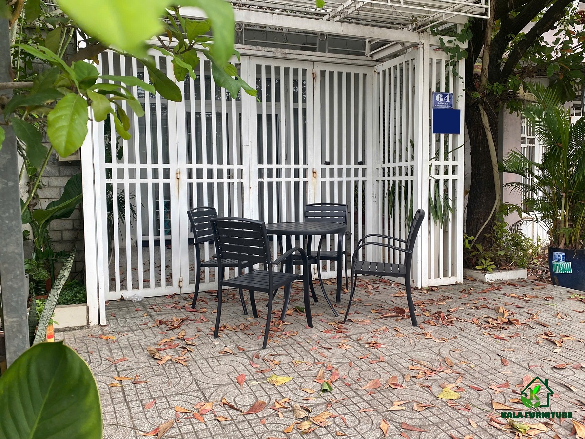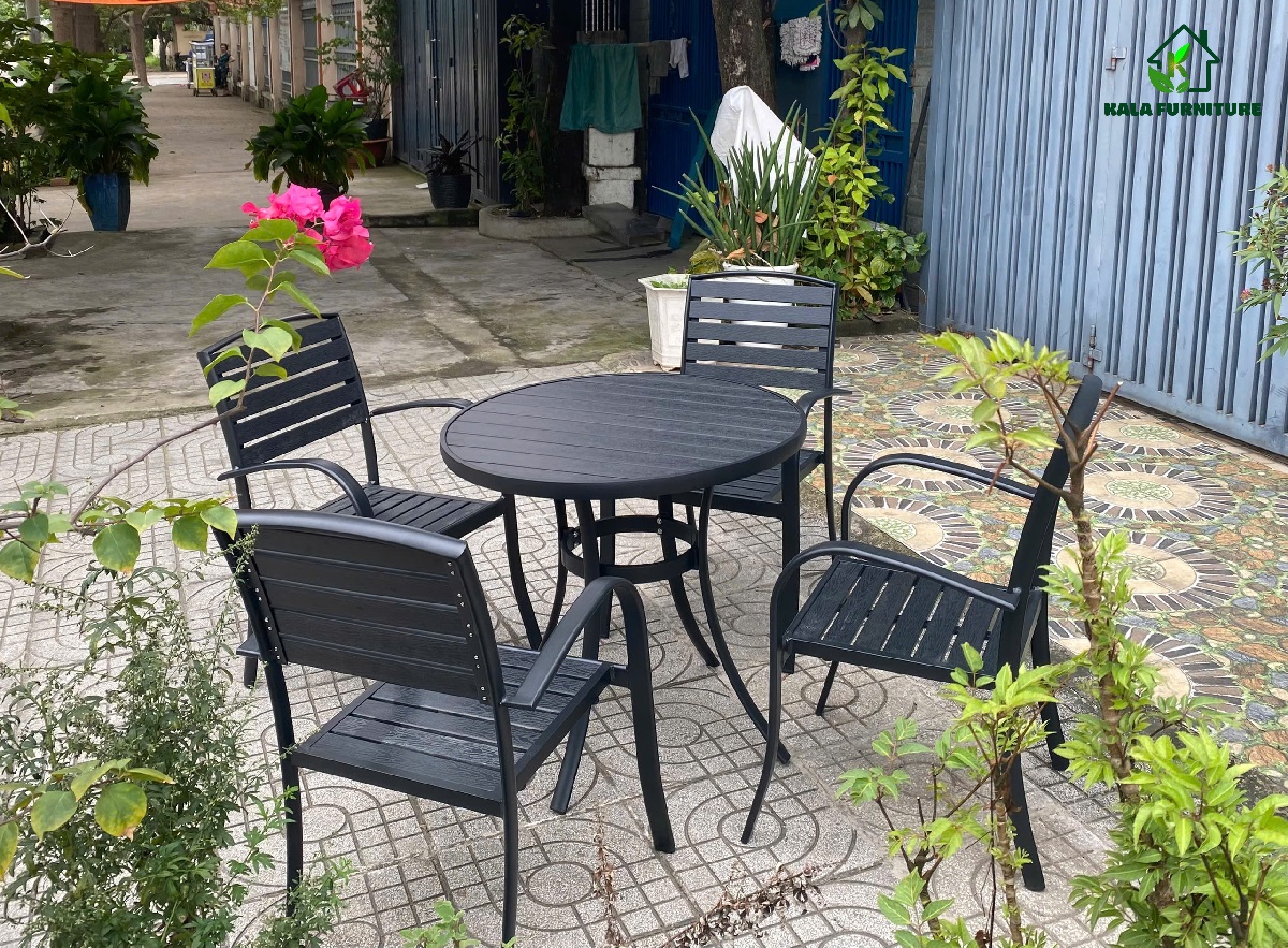 Nếu mọi người không thích tông màu đen thì có thể tham khảo mẫu bàn ghế polywood có tông màu nâu gỗ Tại đây -->