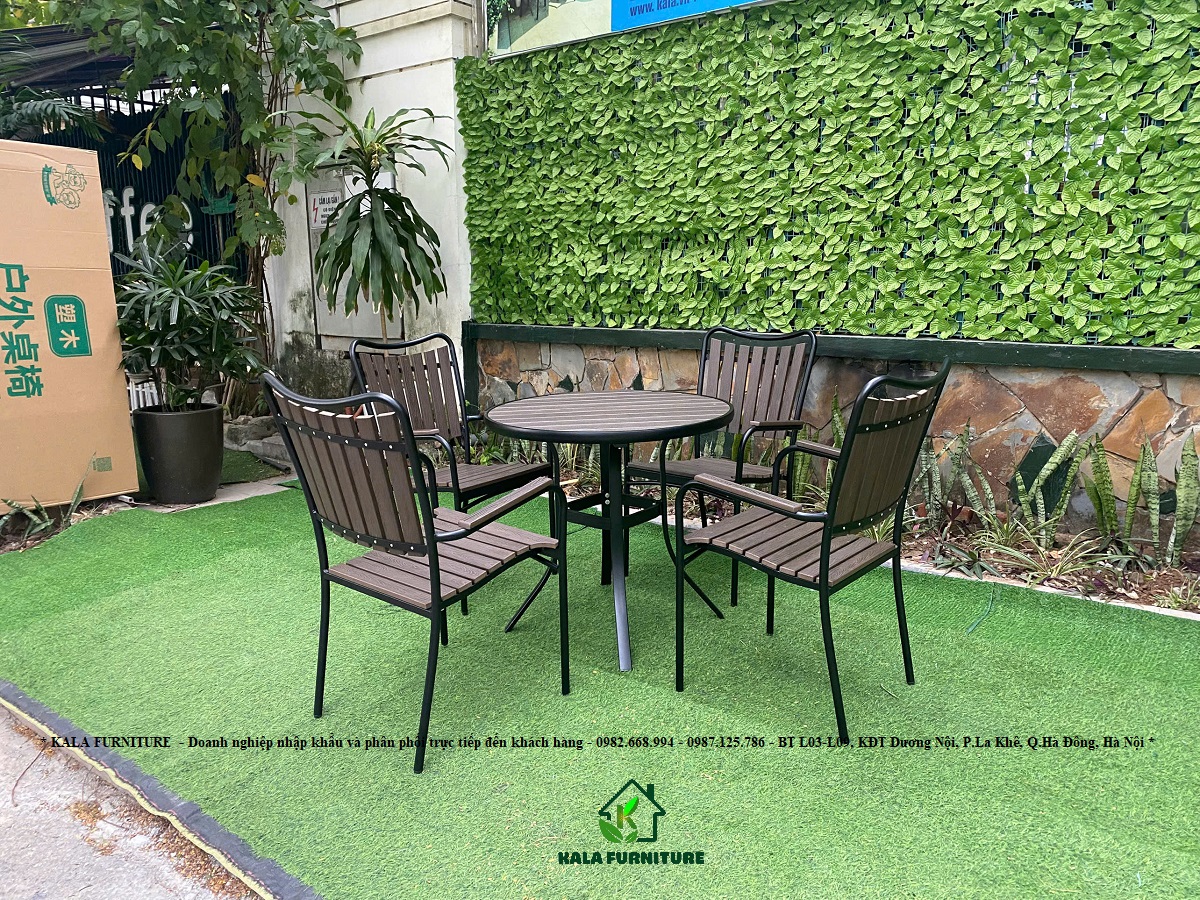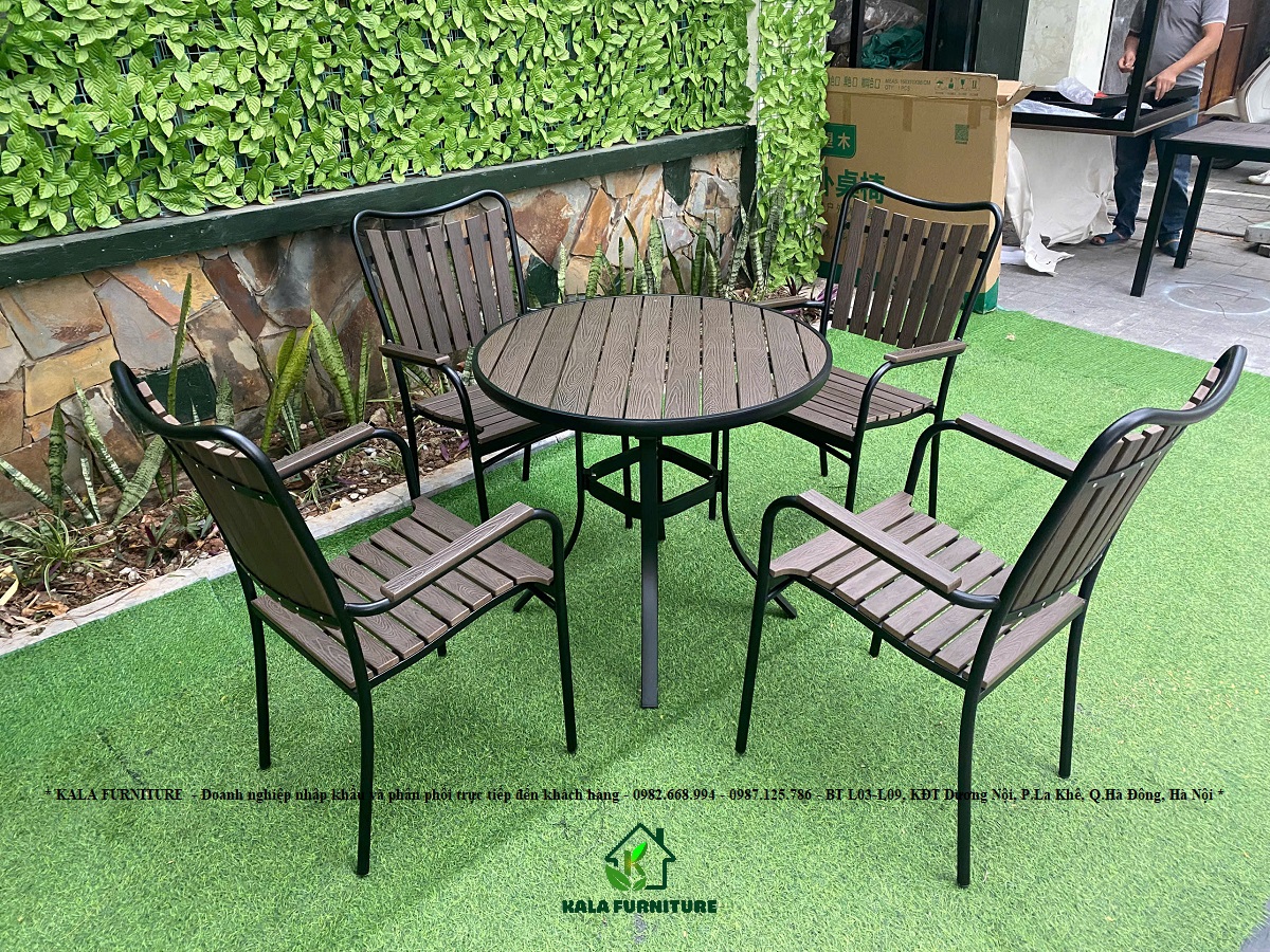 - Chất liệu: Khung bằng nhôm, phần mặt làm bằng nhựa polywood giả gỗ.