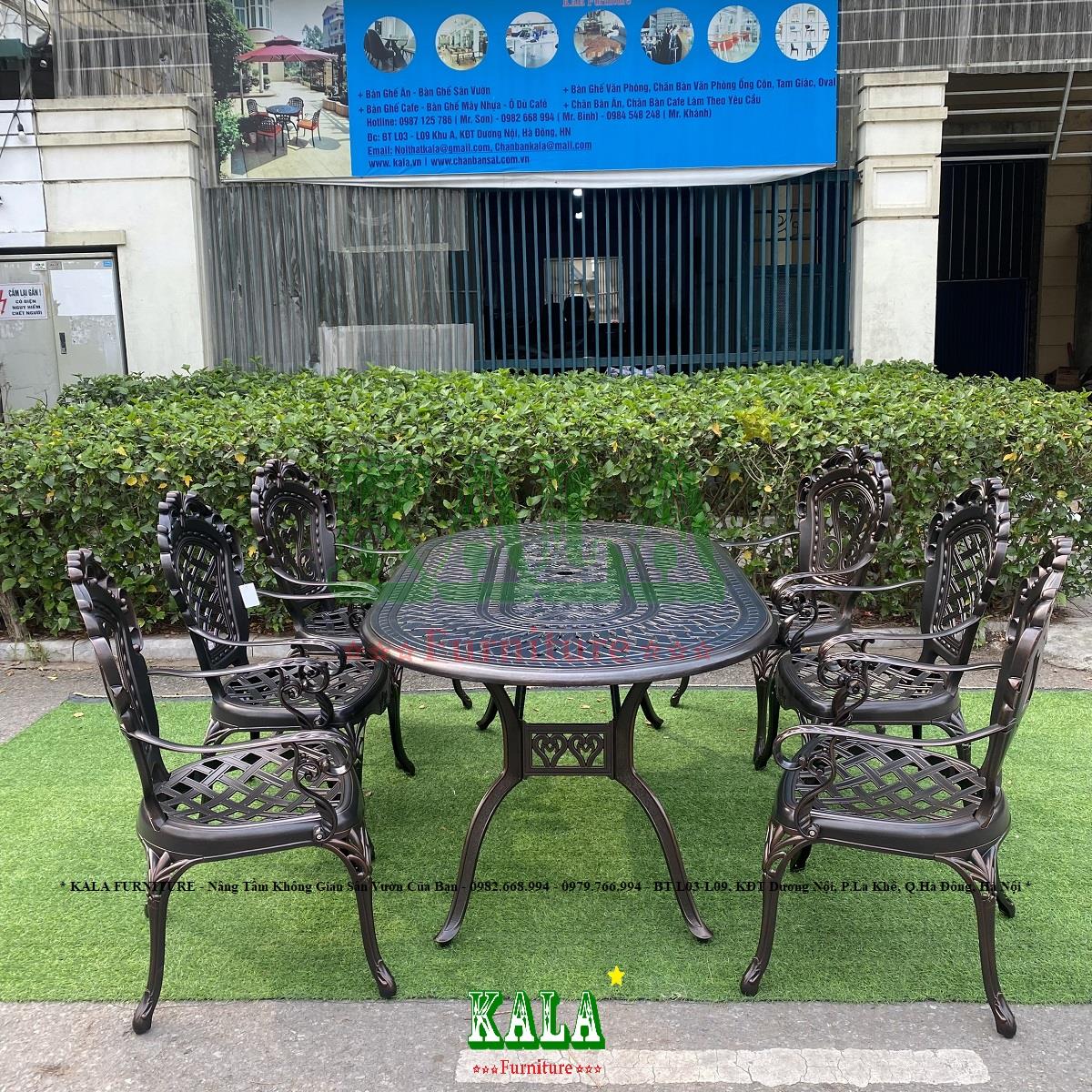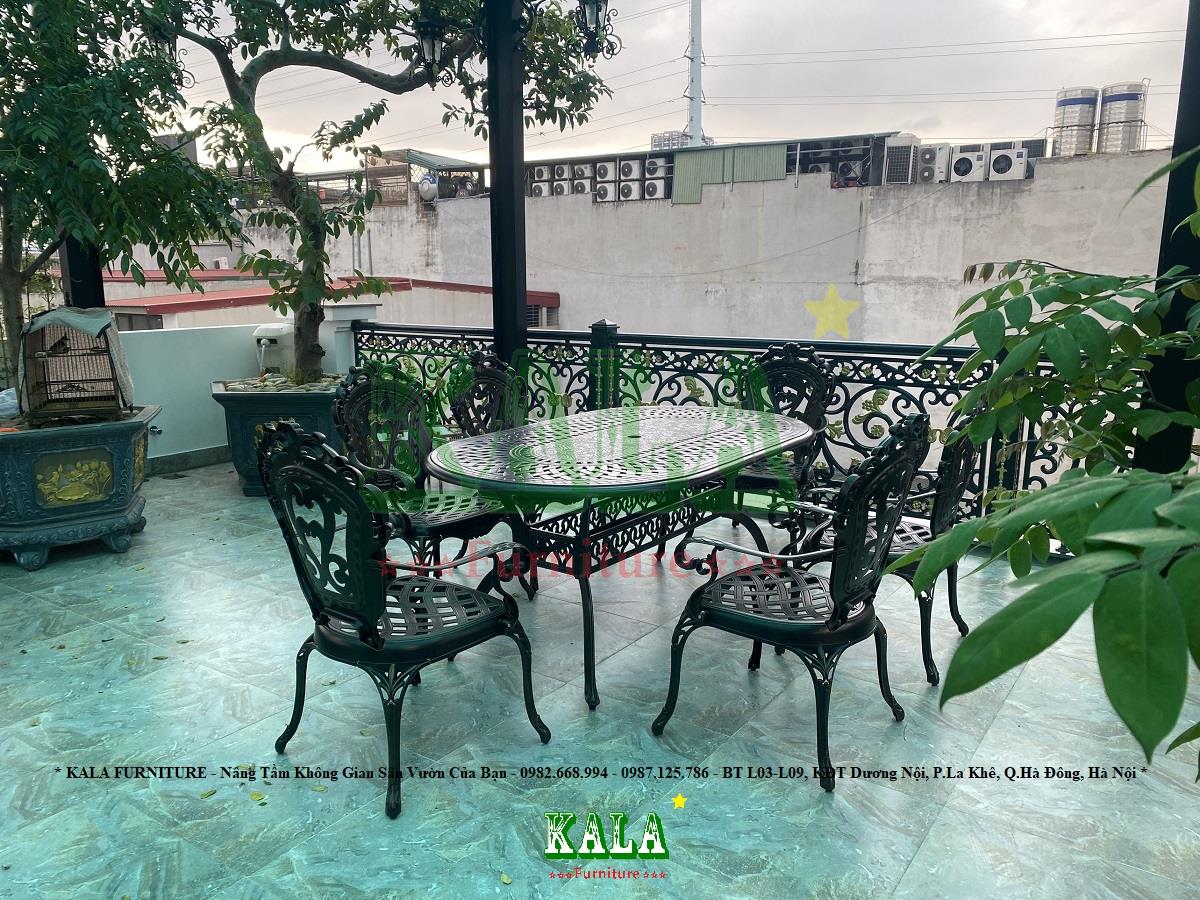 Bàn ghế dùng cho sân vườn, ngoài trời cho gia đình vừa bền vừa đẹp thì chỉ có mẫu bàn ghế nhôm đúc nhập khẩu mới đáp ứng được các nhu cầu trên. Chính vì vậy, chúng được rất nhiều người ưa chuộng, được lựa chọn làm bàn ghế cafe, bàn ghế cho sân vườn của gia đình hiện nay. Và ở các khu nghỉ dưỡng, khu resort,... cũng lựa chọn mẫu bàn ghế nhôm cho không gian ngoài trời. Vậy thì bạn nên tham khảo ngày mẫu bàn ghế nhôm đúc BGND-OV110210VMCT tại Nội thất KALA.