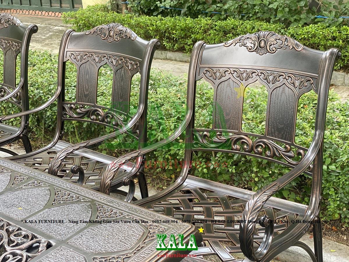 Mẫu bàn ghế bằng khung nhôm đúc dùng ở ngoài trời, dùng cho sân vườn, sân thượng,.... chưa bao giờ là hết thời. Bởi bàn ghế có độ bền cao mặc dù có nắng mưa cũng không làm bàn ghế bị rỉ sét, gãy hỏng mà chỉ làm cho bộ bàn ghế càng trở nên cổ điển, sang trọng. Đặc biệt là các mẫu bàn ghế có kiểu dáng, phong cách cổ điển từ bàn đầu như bộ bàn ghế BGND-CN110212CD thì khi dùng càng lâu bạn càng mê bộ bàn ghế của gia đình mình.
