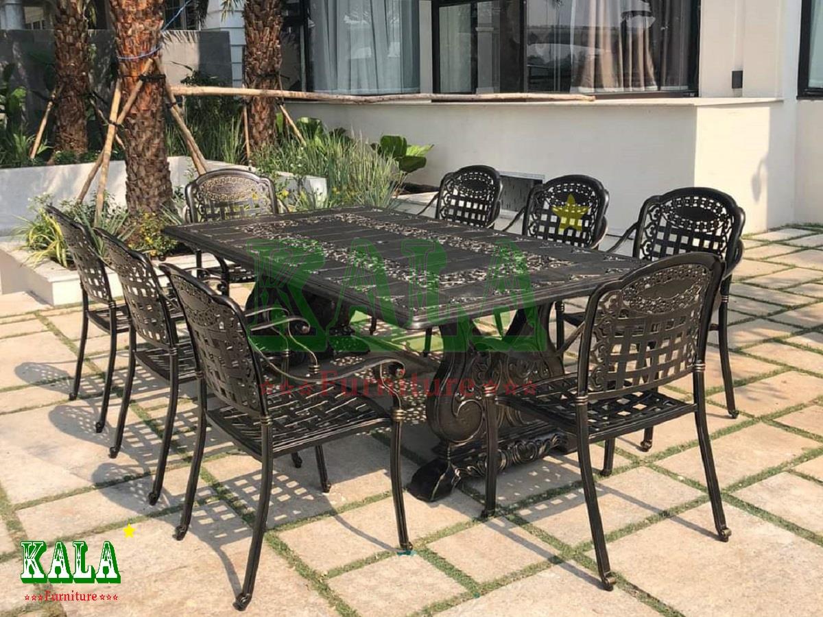 Một mẫu bàn ghế dùng cho sân vườn mang phong cách tân cổ điển, thời thượng, sang trọng đang là xu hướng hiện nay cho không gian sân vườn. Đó là bàn ghế được làm bằng chất liệu nhôm đúc.