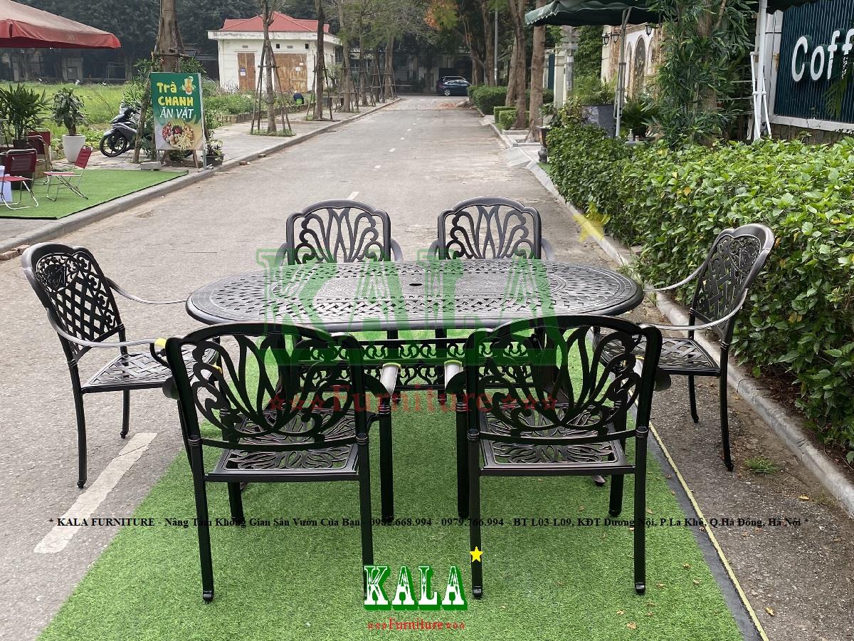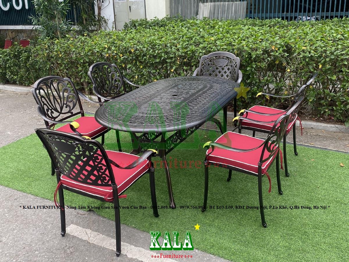 - Bộ bàn ghế nhôm đúc BGND-OV105210HS là sự kết hợp bởi ghế nhôm đúc quả trám với bàn nhôm đúc hình oval vừa rộng rãi như mẫu bàn chữ nhật nhưng vẫn có cảm giác quây quần, xum vầy mọi người lại với nhau như mẫu bàn mặt tròn.