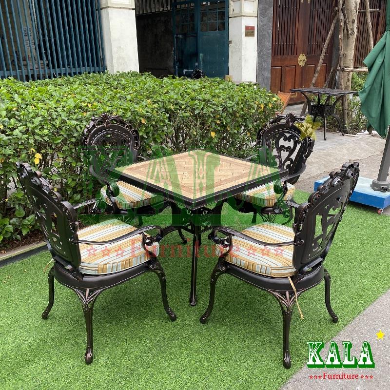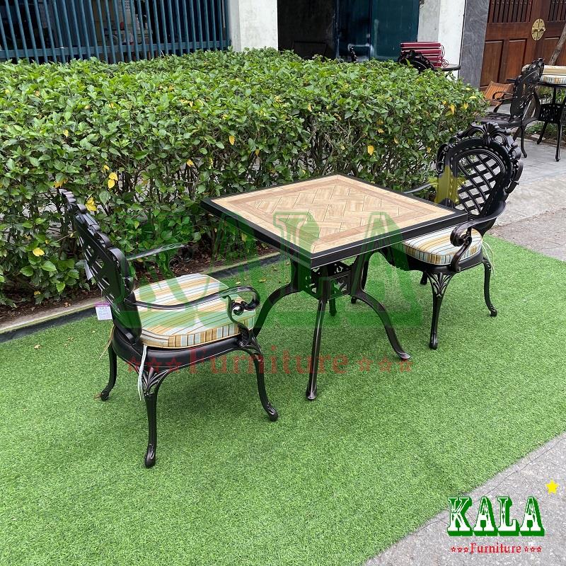 Bàn ghế dùng cho không gian sân vườn, sân thượng, ngoài trời,.... dùng làm bàn ghế cafe, bàn ghế ăn để mọi người trong gia đình, bạn bè mỗi khi có dịp rảnh để quây quần, tụ họp lại với nhau vừa bền vừa đẹp thì chỉ có thể mẫu bàn ghế nhôm đúc. Vậy hãy tham khảo ngay mẫu bàn ghế nhôm đúc BGND-VD80VMCT tại Nội thất KALA.