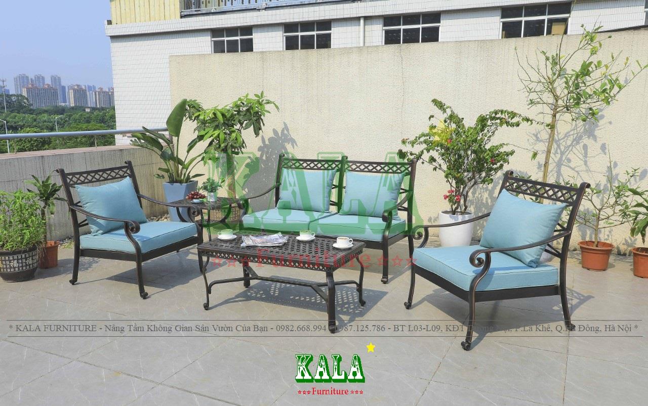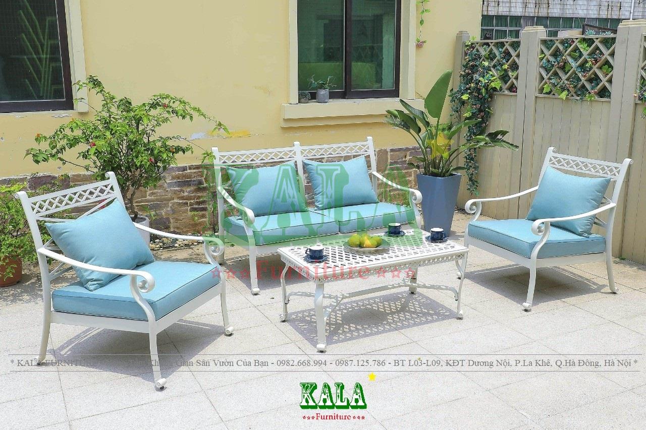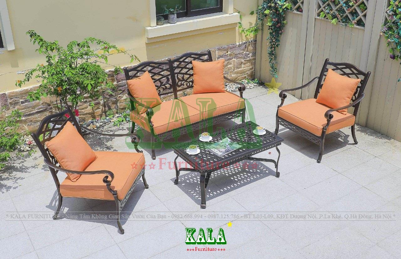 Bàn ghế sofa ngoài trời sẽ làm cho không gian của bạn trở nên mới lạ, độc đáo, bắt mắt hơn. Bàn ghế được làm bằng nhôm đúc toàn bộ kết hợp với hoạ tiết hoa văn đơn giản, tinh tế sẽ góp phần làm nổi bật không gian của bạn hơn.