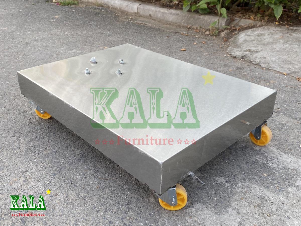 Chân đế bánh xe bằng inox có bánh xe dùng cho ô lệch tâm vuông hoặc ô lệch tâm tròn phổ biến hiện nay. Bề mặt inox sáng bóng có thể soi gương càng làm tăng sự sang trọng, cao cấp cho các mẫu ô.