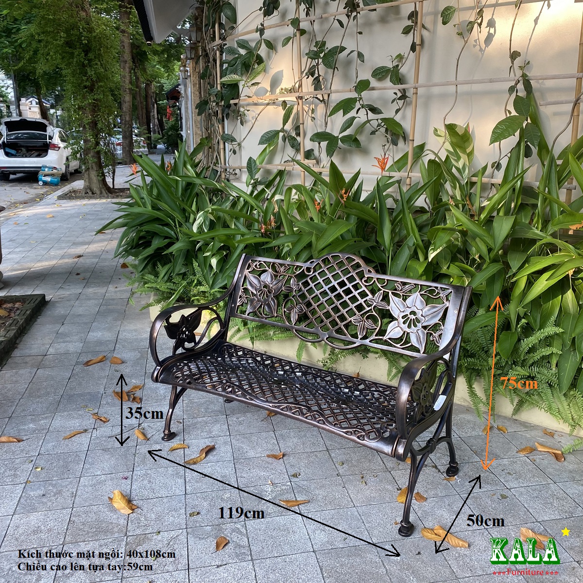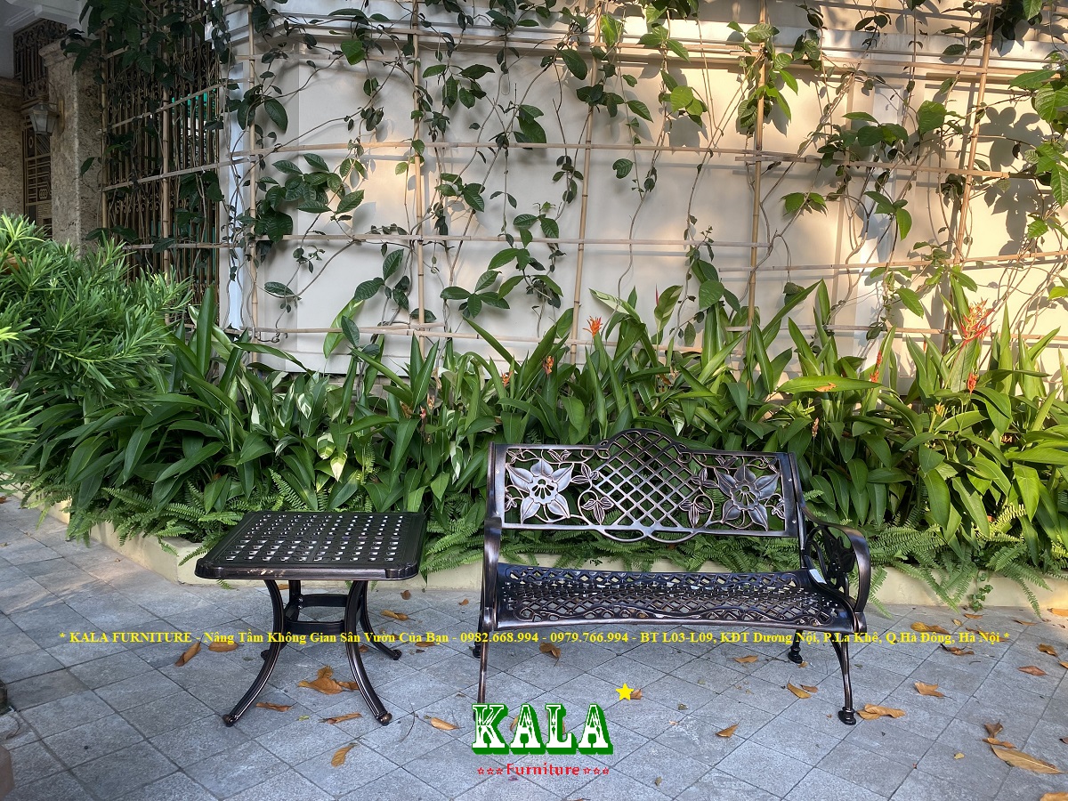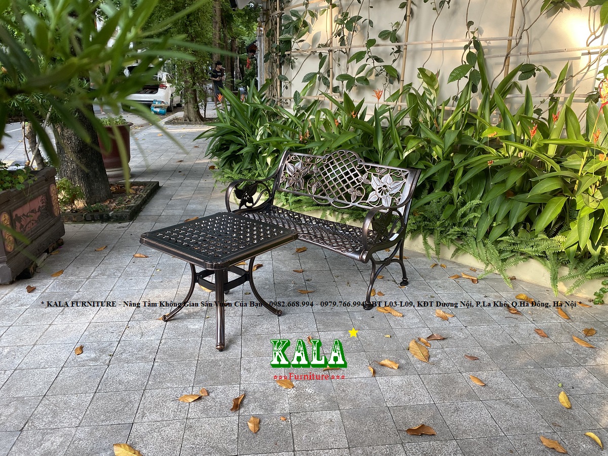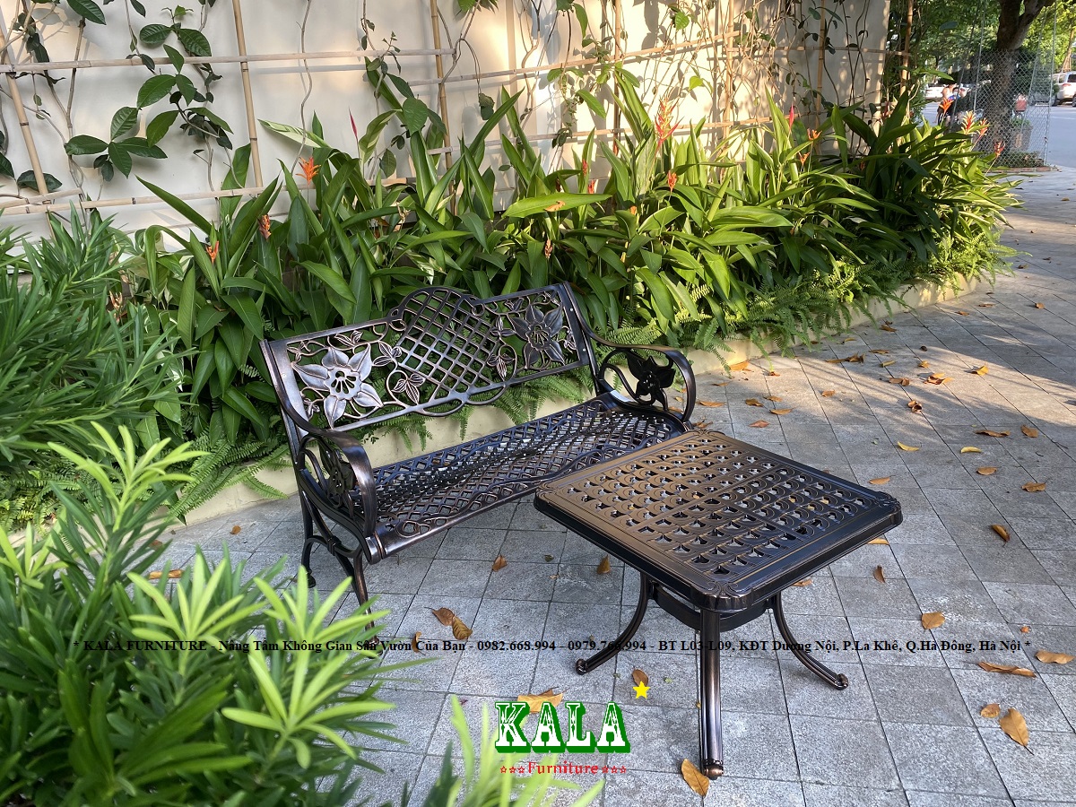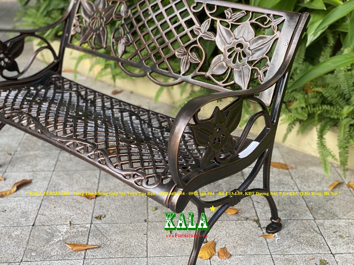 Ghế băng dùng cho sân vườn, công viên được làm bằng nhôm đúc toàn bộ 100%, bên ngoài phủ sơn tĩnh điện siêu bền, dùng lâu không lo bị gỉ sét, gãy hỏng.