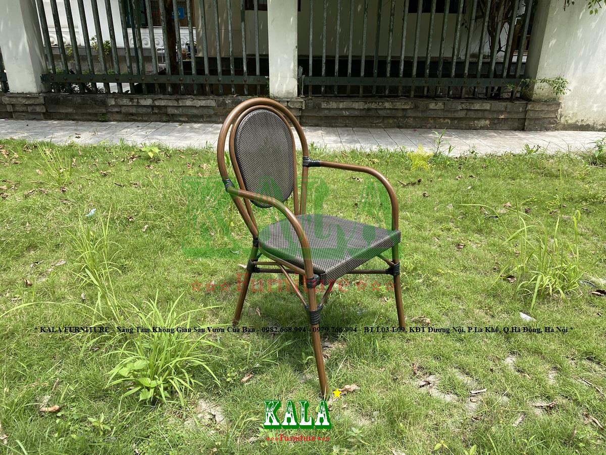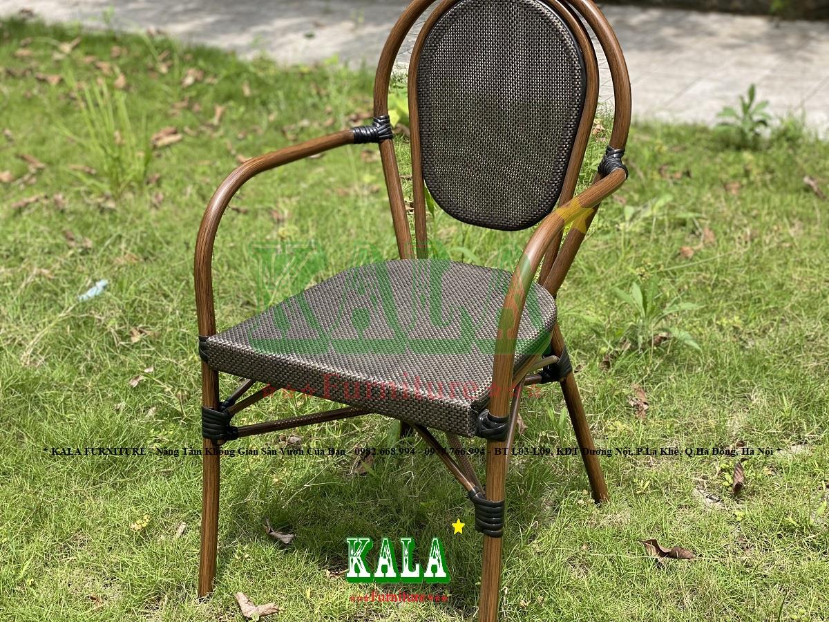 - Khung ghế được làm bằng ống nhôm làm cho ghế chắc chắn, cứng cáp hơn và cũng làm cho ghế có trọng lượng nhẹ, dễ dàng di chuyển qua lại các bàn, đến những vị trí khác nhau. Bên ngoài khung được phun sơn tĩnh điện công nghệ in vân gỗ mới nhất hiện nay để ghế bền màu hơn, sang trọng hơn hơn, không lo bị gỉ sét, gãy hỏng dưới tác động, biến đổi của môi trường.