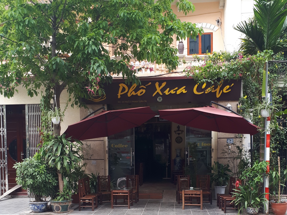 Ảnh 3: Mẫu ô lệch tâm tròn 3m khung thép sơn tĩnh điện được KALA cung cấp cho quán caffe mang phong cách giản dị trầm ấm vì vậy việc đầu tư mua Ô dù là rất quan trọng để tô đẹp lên không gian của quán.