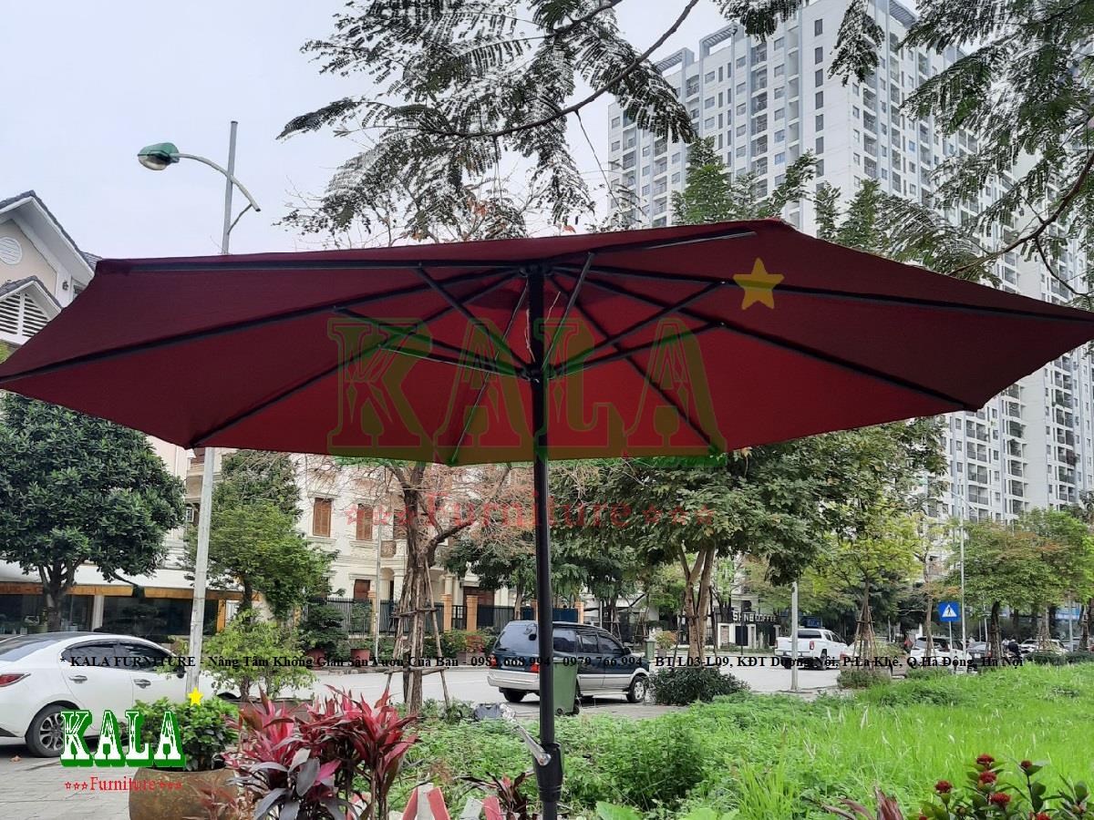 - Ô chính tâm có tay quay được làm toàn bộ khung bằng sắt ống dày dặn, để tăng sự cứng cáp, chắc chắn cũng như độ bền của ô khi dùng ngoài trời. Khung ô cũng được phủ qua lớp sơn tĩnh điện bên ngoài làm cho ô trở nên bóng, đẹp cũng như bền hơn, không lo bị gỉ sét gãy hỏng.