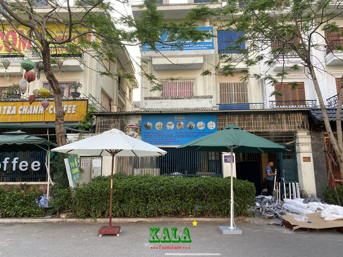 Dưới đây là mẫu ô dù chính tâm cán gỗ mà KALA đã bàn giao tới quý khách hàng ở Nguyễn Xiển, Thanh Xuân, Hà Nội qua không gian ảnh quý khách có thể thấy được việc đầu tư ô là rất cần thiết, mỗi khi ánh mặt trời lên sẽ làm cho quán của bạn rất oi bức nóng lực nên việc có ô sẽ tạo ra một không gian cực kỳ mát mẻ khi khách hàng ngồi thư giãn nhâm nhi ly cafe cũng cảm thấy thoải mái hơn./