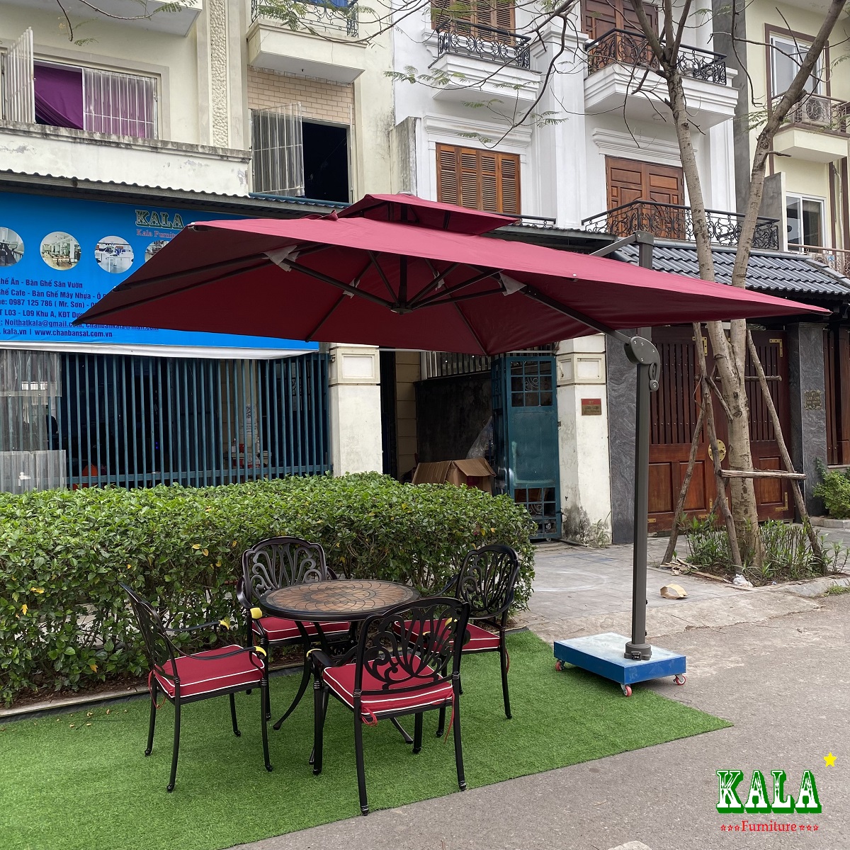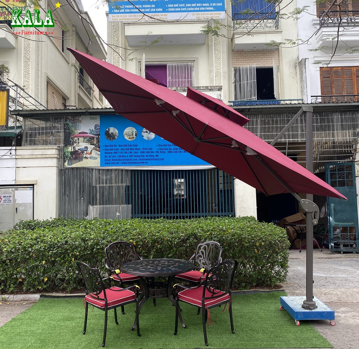 - Ô lệch tâm vuông khung hợp kim nhôm kết hợp cùng mẫu bàn ghế nhôm đúc là sự kết hợp hoàn hảo cho không gian sân vườn, ngoài trời cho gia đình, quán cafe. Bởi chúng đều được làm bằng hợp kim nhôm nên rất bền dù để ngoài nắng mưa. Mẫu mã ô dù và bàn ghế nhập khẩu luôn đi xu hướng mới nhất hiện nay.