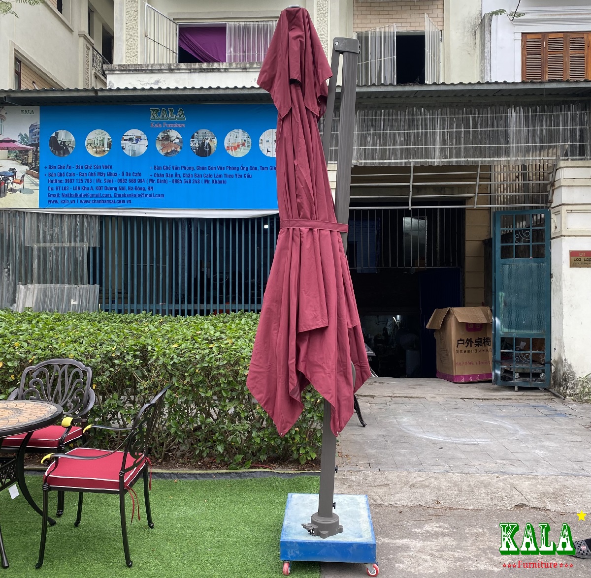 - Ô dù lệch tâm vuông có tay quay điều chỉnh độ mở rộng của ô.