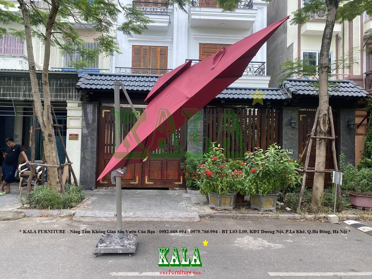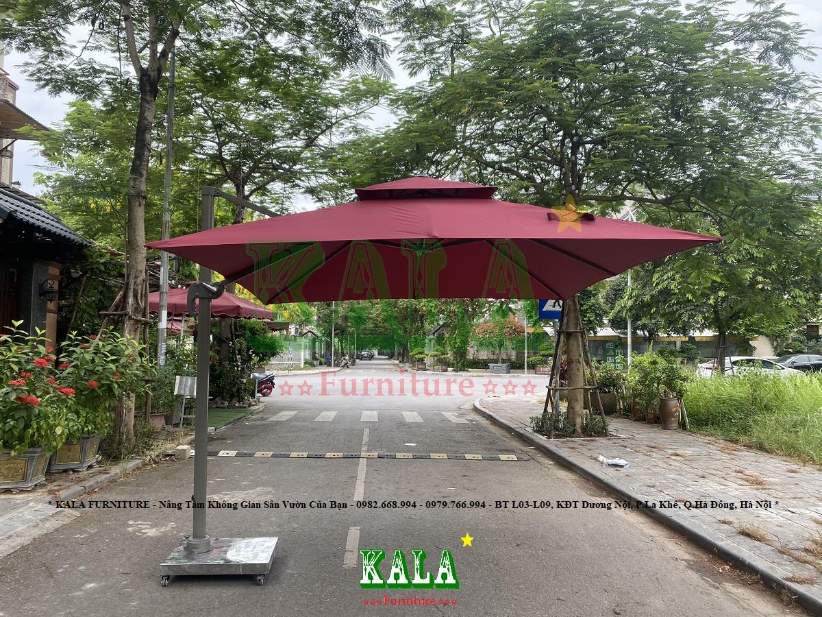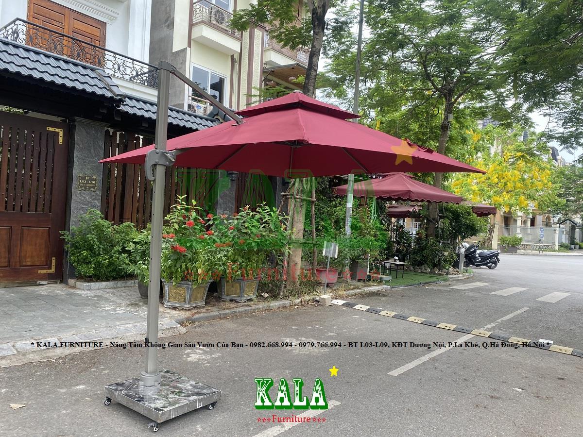 Ô lệch tâm vuông 3mx3m khung nhôm thường được sử dùng nhiều tại sân vườn các nhà có sân vườn lớn, sân thượng các mẫu nhà ống, các quán cafe cao cấp, hiện đại,.... Toàn bọ khung ô được làm bằng hợp kim nhôm sơn tĩnh điện nên dù nắng mưa, oxi hoá trong không khí cũng không lo bị rỉ sét gãy hỏng.