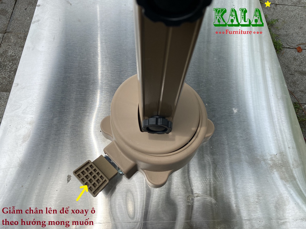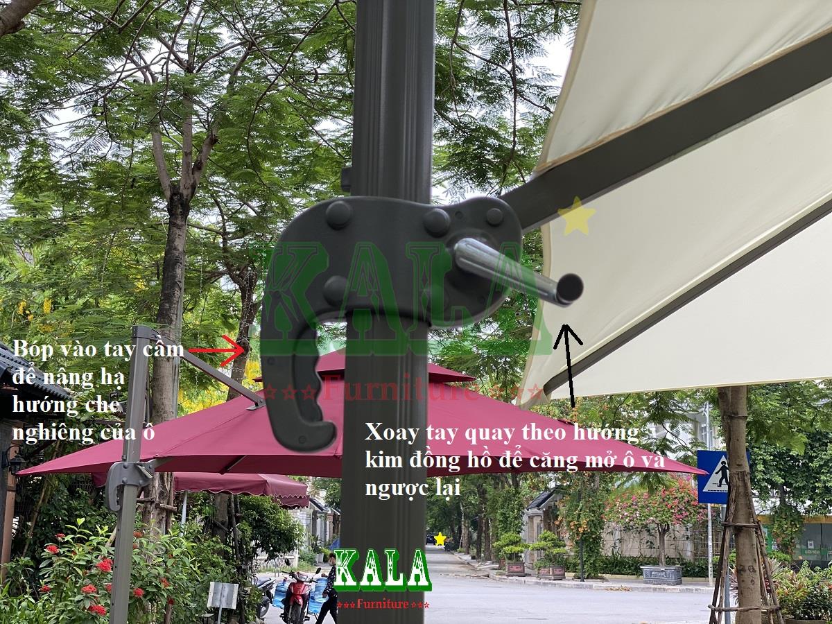 - Ô dù lệch tâm vuông có tay quay điều chỉnh độ mở rộng của ô.